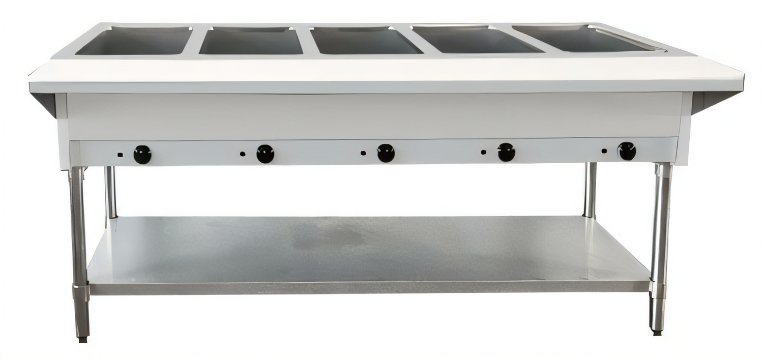 - Holds 5 full-size pans in individual open wells for versatile menu set-ups