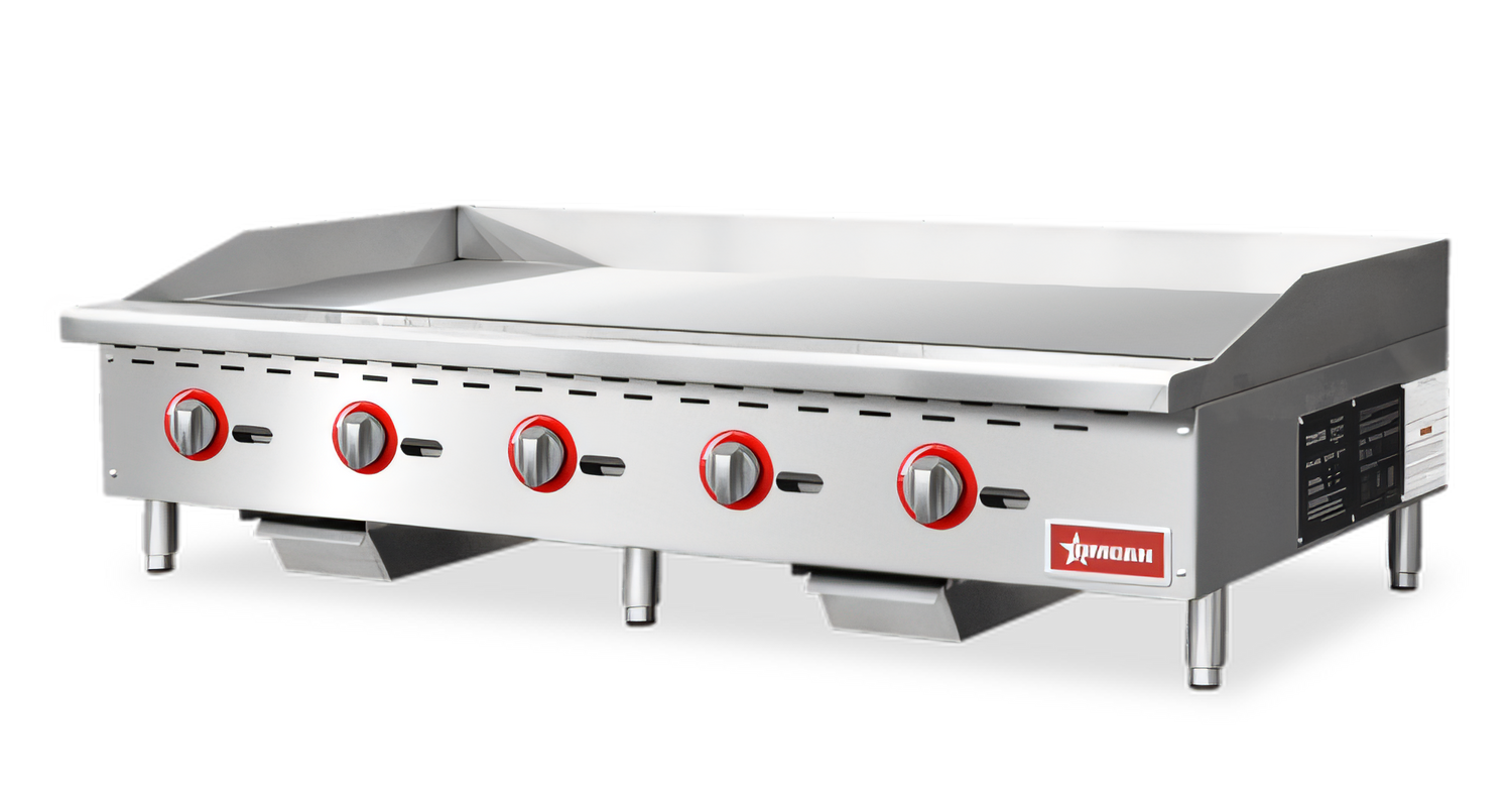 5-Burner | 59.8" x 20.7" Cooking Surface | 150,000 BTUBuilt for demanding breakfast, lunch, or dinner service, this heavy-duty 60" countertop griddle from Omcan USA delivers the power and cooking real estate large-volume kitchens require—without sacrificing speed, safety, or ease of cleanup.