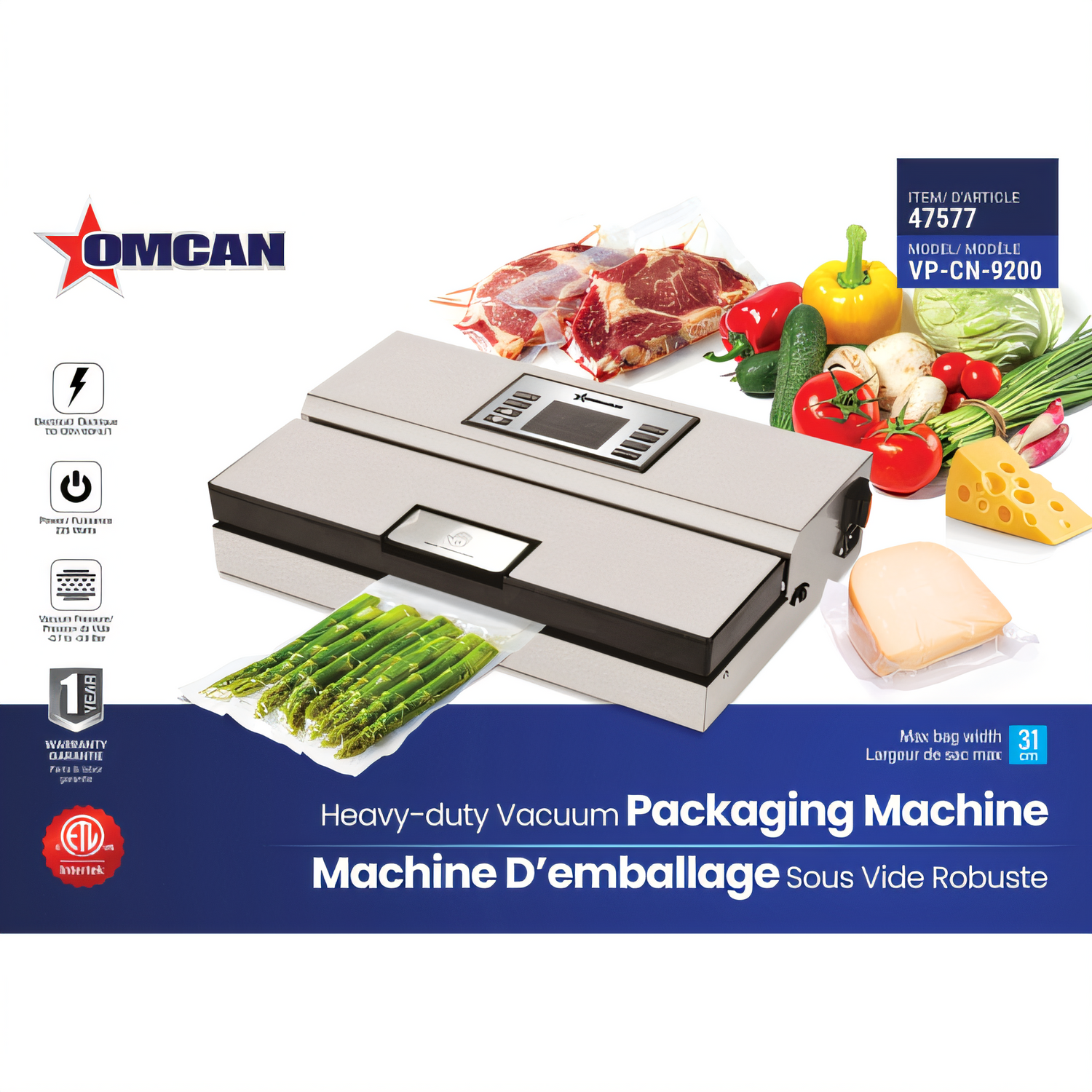 Omcan USA 47577 Vacuum Sealer — 12.2" seal bar, pulse/manual controls, canister function, 225W, durable commercial vacuum packing.