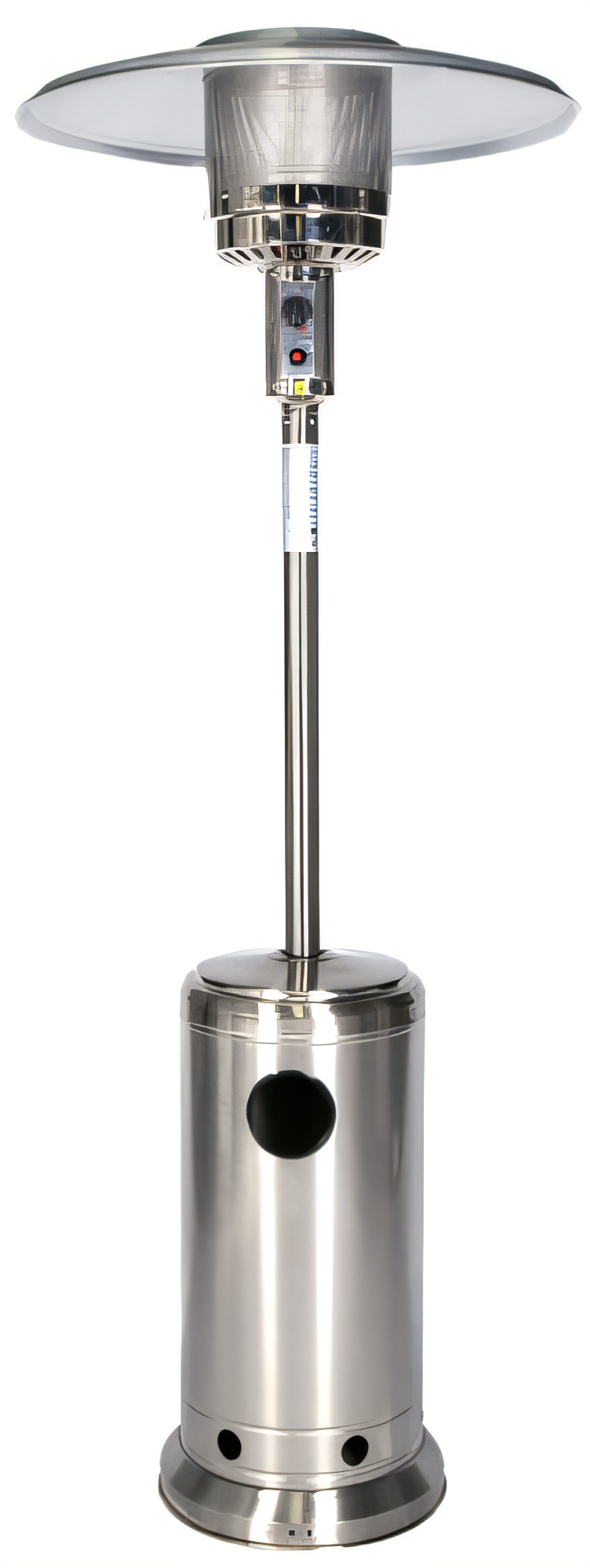 (PH-CN-2210-S) Patio Heater, 87"H, propane, automatic shut-off, anti-tilt switch, accommodates 20 lb. tank (not included), casters, 48,000 BTU, round aluminum reflector, stainless steel construction