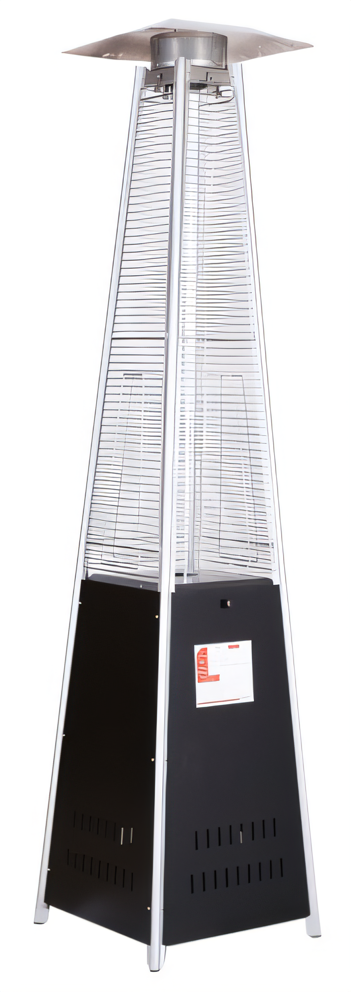 (PH-CN-2270-P) Patio Heater, 89"H, propane, pyramid-style, automatic shut-off, anti-tilt switch, accommodates 20 lb. tank (not included), casters, 42,000 BTU, inner glass tube with protective guard, stainless steel construction, powder coat finish