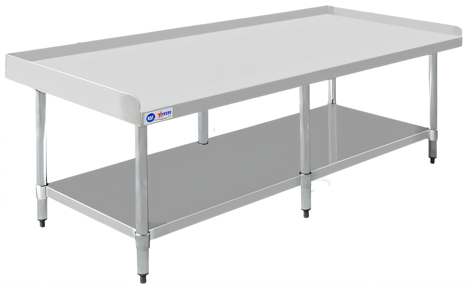 Equipment Stand, 72"W x 30"D, stainless steel top with 2" upturn on rear & sides, galvanized undershelf & (6) legs, adjustable bullet feet