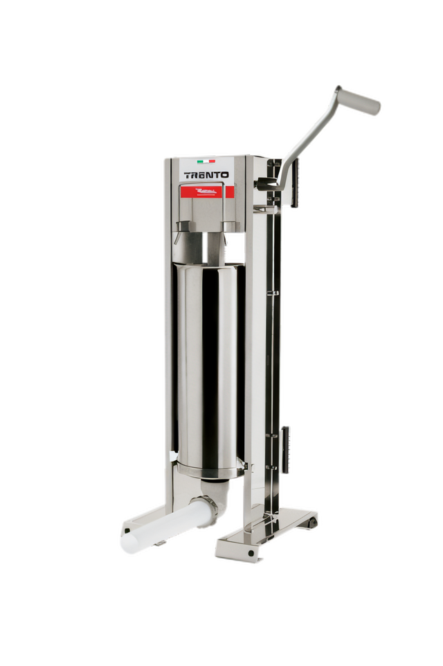 (48168) Trento Sausage Stuffer, manual, 2-speed vertical & horizontal gear drive, 18 lbs. (8 kg) capacity, stainless steel cylinder & sides, Made in Italy