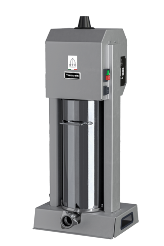 (SS-IT-0015) Trento Sausage Stuffer, electric, vertical, 33 lbs. (15 kg) capacity, fixed barrel (cylinder), pedal operated with automatic piston return, removable cylinder with handle, removable plastic piston with silicone gasket, quick-release vent valve, 10mm, 20mm, 30mm & 40mm spouts included, stainless steel construction, 200 watts, 110v/60/1-ph, NEMA 5-15P, QPS, Made in Italy