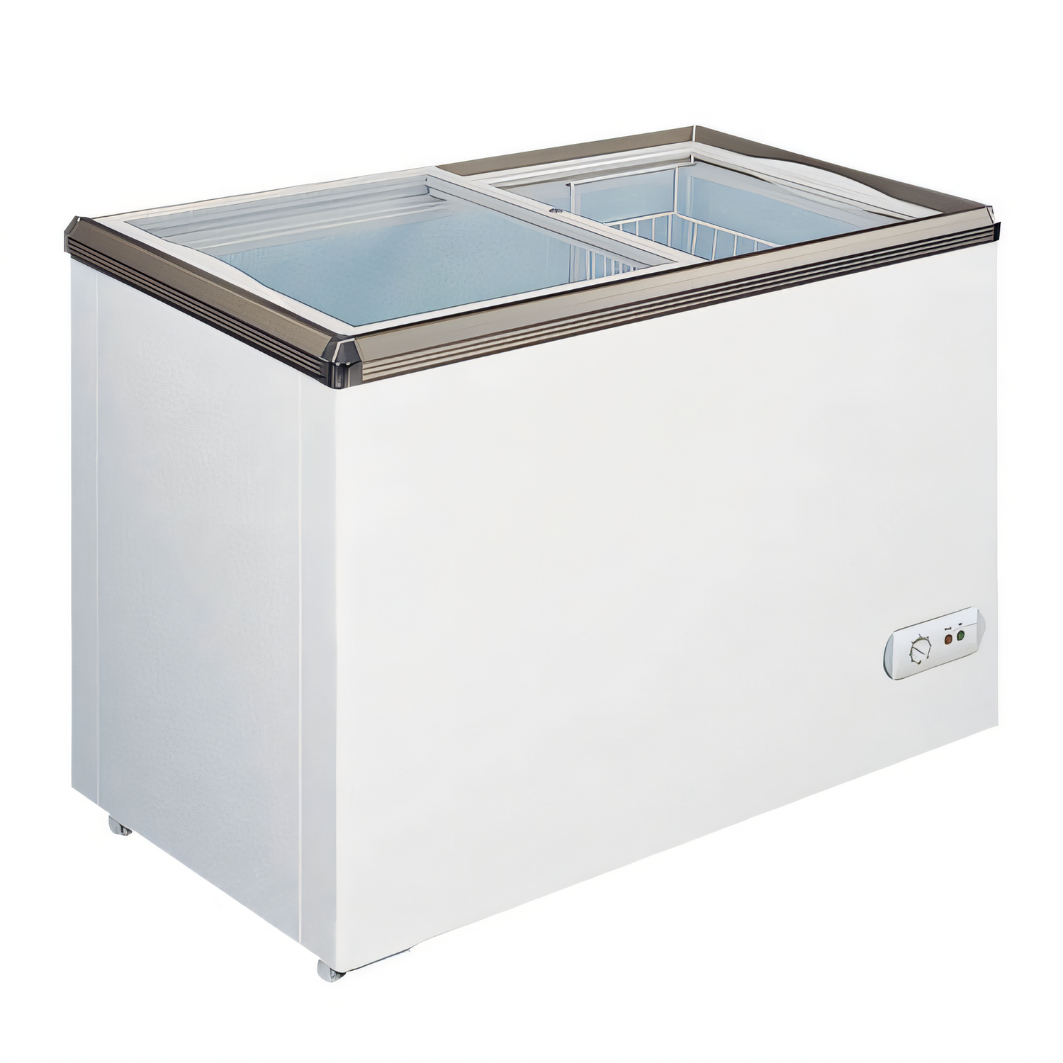 - Flat low-E glass top: Sliding panes give customers a full, glare-free view while reducing condensation and energy loss.