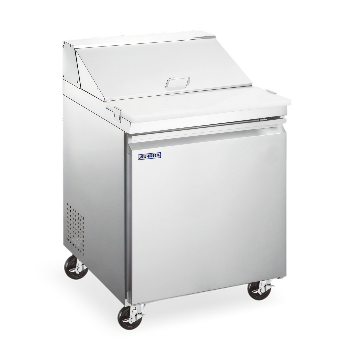 Model PT-CN-0711E-HC | 27.5" W • 7.1 cu.ft. • 1 DoorMaximize output in minimal space. The 28" Aurora Mega Top delivers a chilled pan rail for nine 1/6-size pans, a full-width cutting board, and a roomy 7.1 cu.ft. base—keeping every ingredient cold, organized, and right where you need it for lightning-fast sandwich, salad, poke, or burrito assembly.