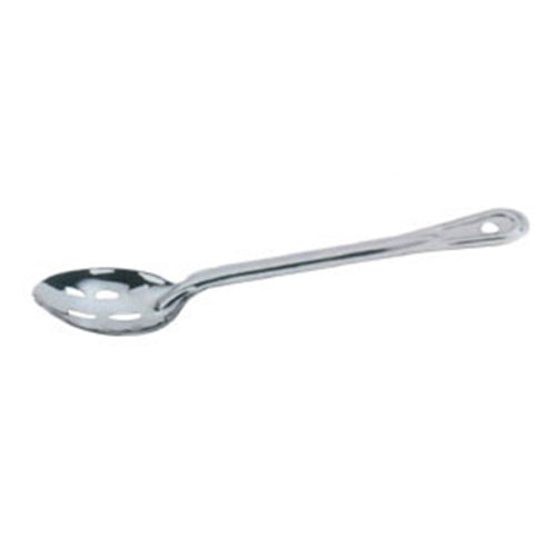 Omcan USA 11" heavy-duty stainless steel slotted basting spoon—durable, rust-resistant, perfect for draining and serving hot foods.