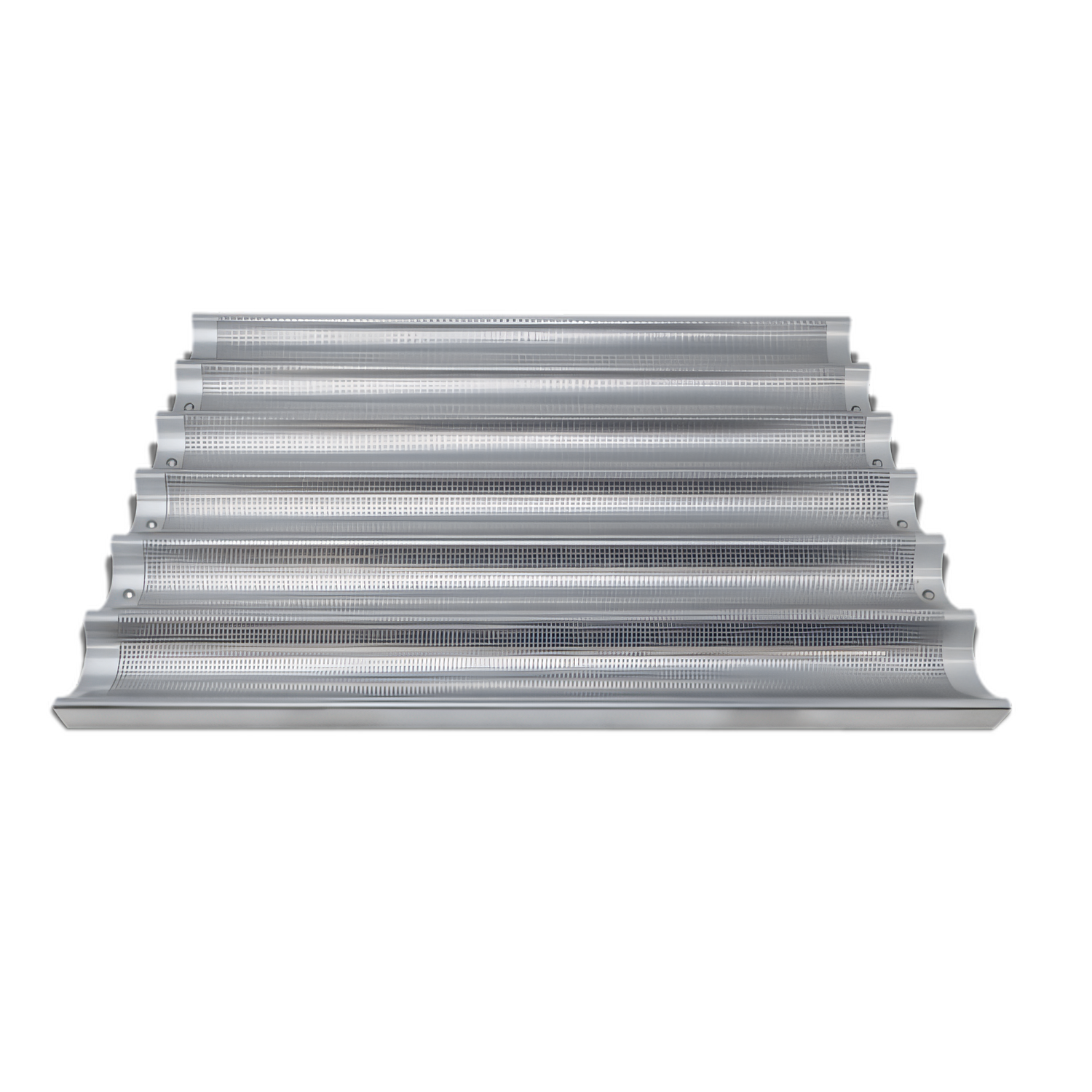 (81116) Baguette/French Bread Pan, (6) 26″ x 2-7/16″ compartments, 18" x 26" x 1-1/5" OA, perforated, glazed aluminum