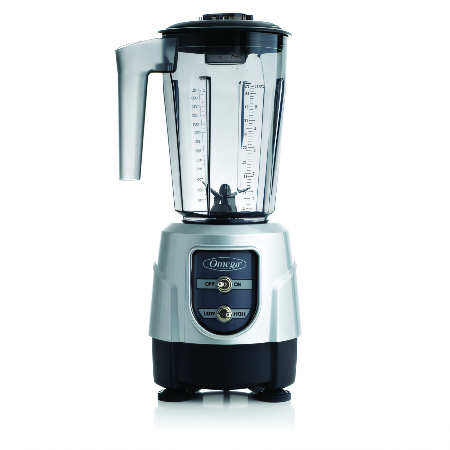 Omega Blender, 48 oz. Tritan coopolyester BPA Free container, (2) speeds toggle (high/low), stainless steel blade assembly, recessed coupling system, removable stainless steel blade assembly, silver, BPA free, 1 HP, 600 watts, cETLus, ETL-Sanitation, CE