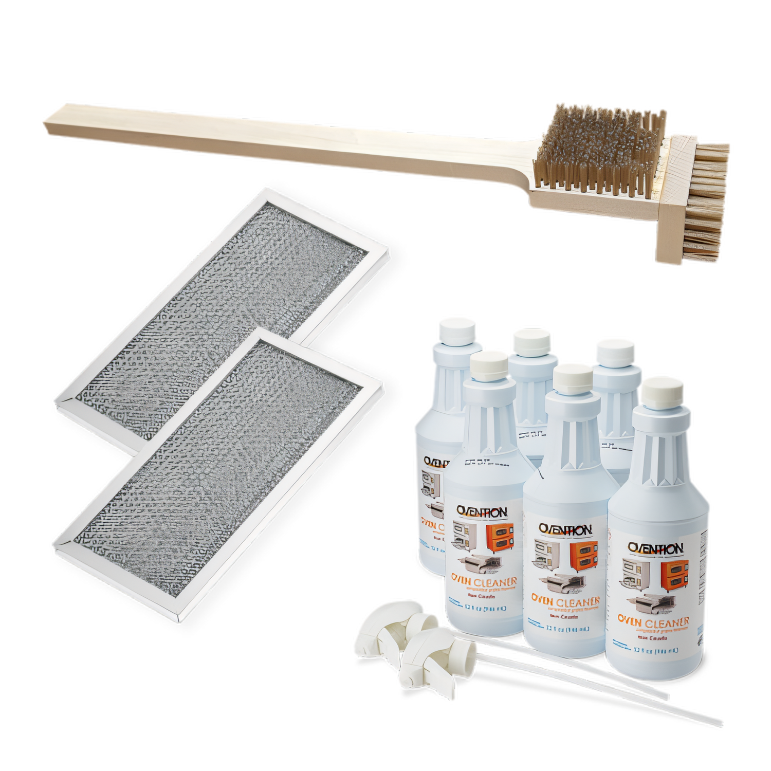 Ovention OV-CARE-C2000 premium care kit for Conveyor C2000: brush, air filters, and cleaner for optimal pizza oven performance.