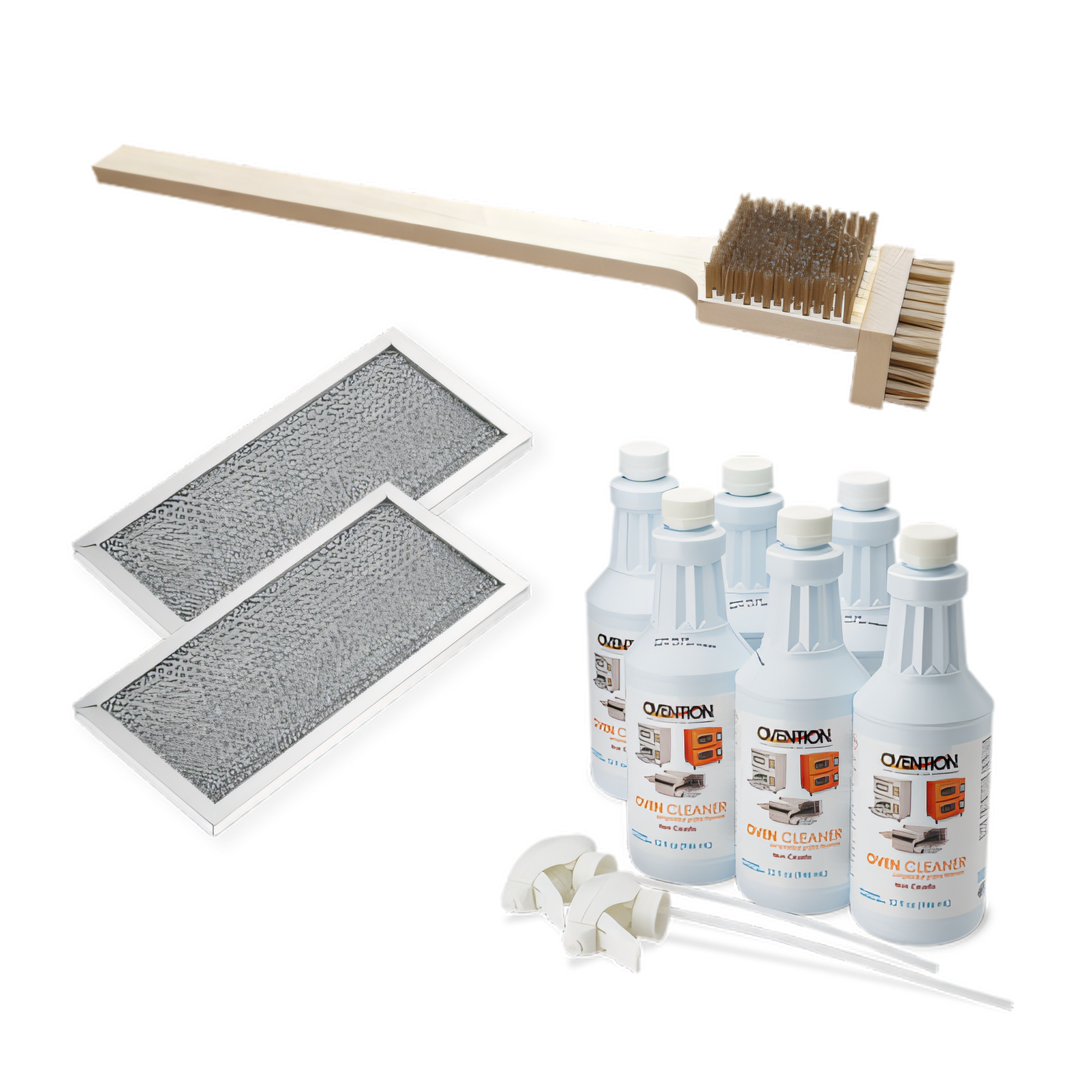 Ovention OV-CARE-C2600 Care Pack for Conveyor C2600: brush, air filters & cleaner for improved hygiene, performance, and easy maintenance.