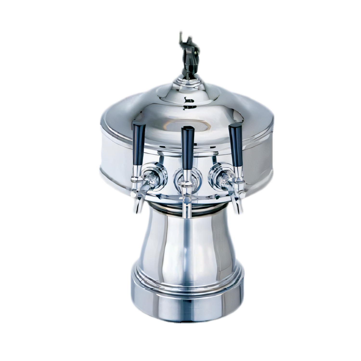 Gambrinus Draft Beer Tower, countertop, 12-3/4" diameter x 19-3/8"H, glycol-cooled, accommodates (3) faucets on each side , all Perlick towers include 630SS faucets (630SSTF faucets where applicable on TF Brass and Gold Towers), 7-3/4" OA faucet spread (per side), 9-7/16" faucet clearance, 8" diameter base, satin chrome finish (Note: Must be combined with a full Century system quote, cannot be ordered standalone. )