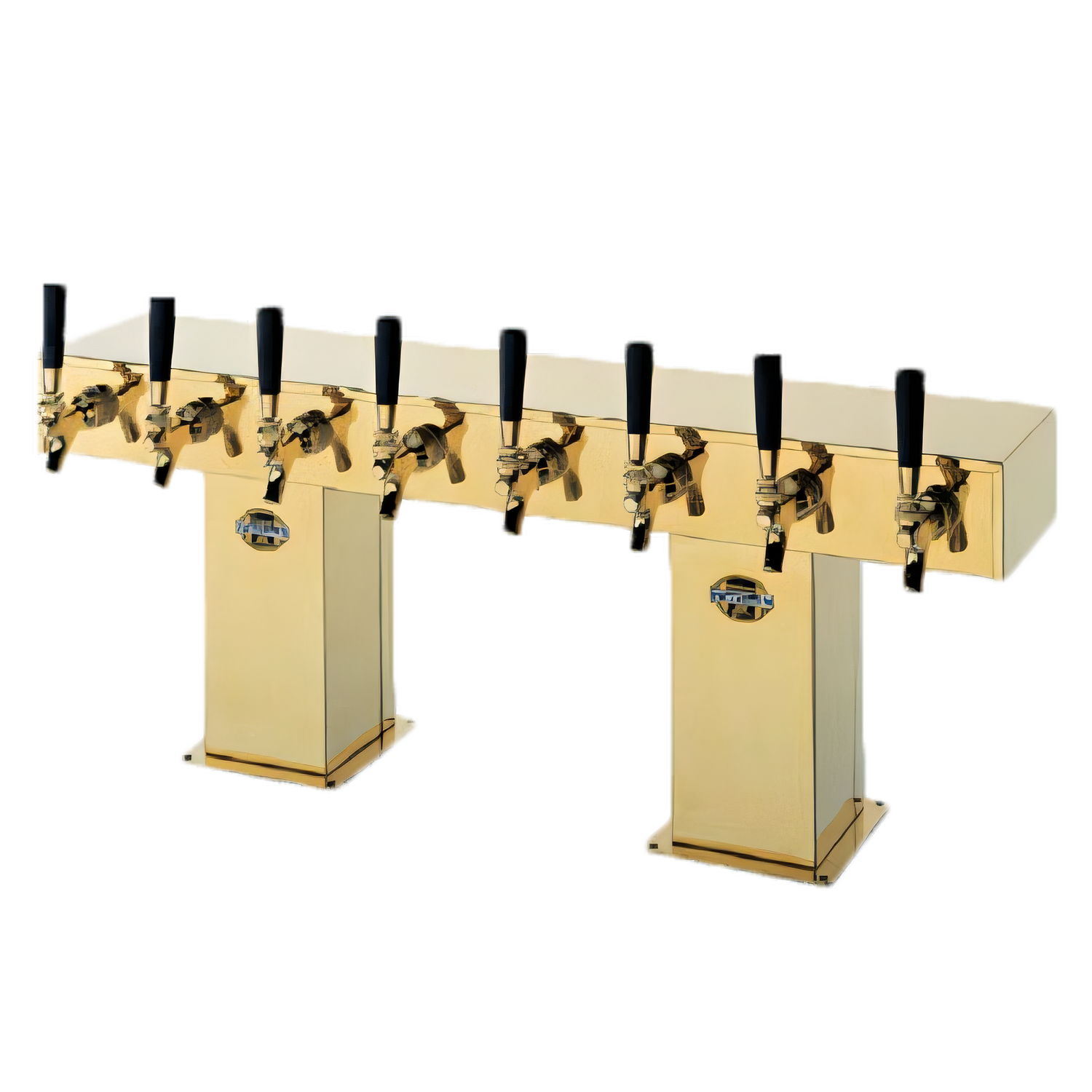 Bridge Tee Draft Beer Tower, countertop, extra high, 33-1/8"W x 16-11/16"H, glycol-cooled, accommodates (8) faucets , all Perlick towers include 630SS faucets (630SSTF faucets where applicable on TF Brass and Gold Towers), 4-1/8" OC, 13-1/4" faucet clearance, (2) 4-5/8" sq. bases, insulated dispensing heads, includes copper coolant lines & cold block, finish (Note: Must be combined with a full Century system quote, cannot be ordered standalone. )