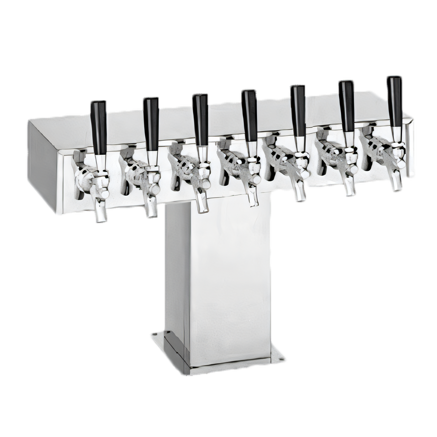 Wide Base Tee Draft Beer Tower, countertop, extra high, 22-7/8"W x 16-11/16"H, glycol-cooled, accommodates (8) faucets , all Perlick towers include 630SS faucets (630SSTF faucets where applicable on TF Brass and Gold Towers), 2-3/4" OC, 13-1/4" faucet clearance, 7-5/8"W base, insulated dispensing heads, includes copper coolant lines & cold block, polished chrome finish (Note: Must be combined with a full Century system quote, cannot be ordered standalone. )