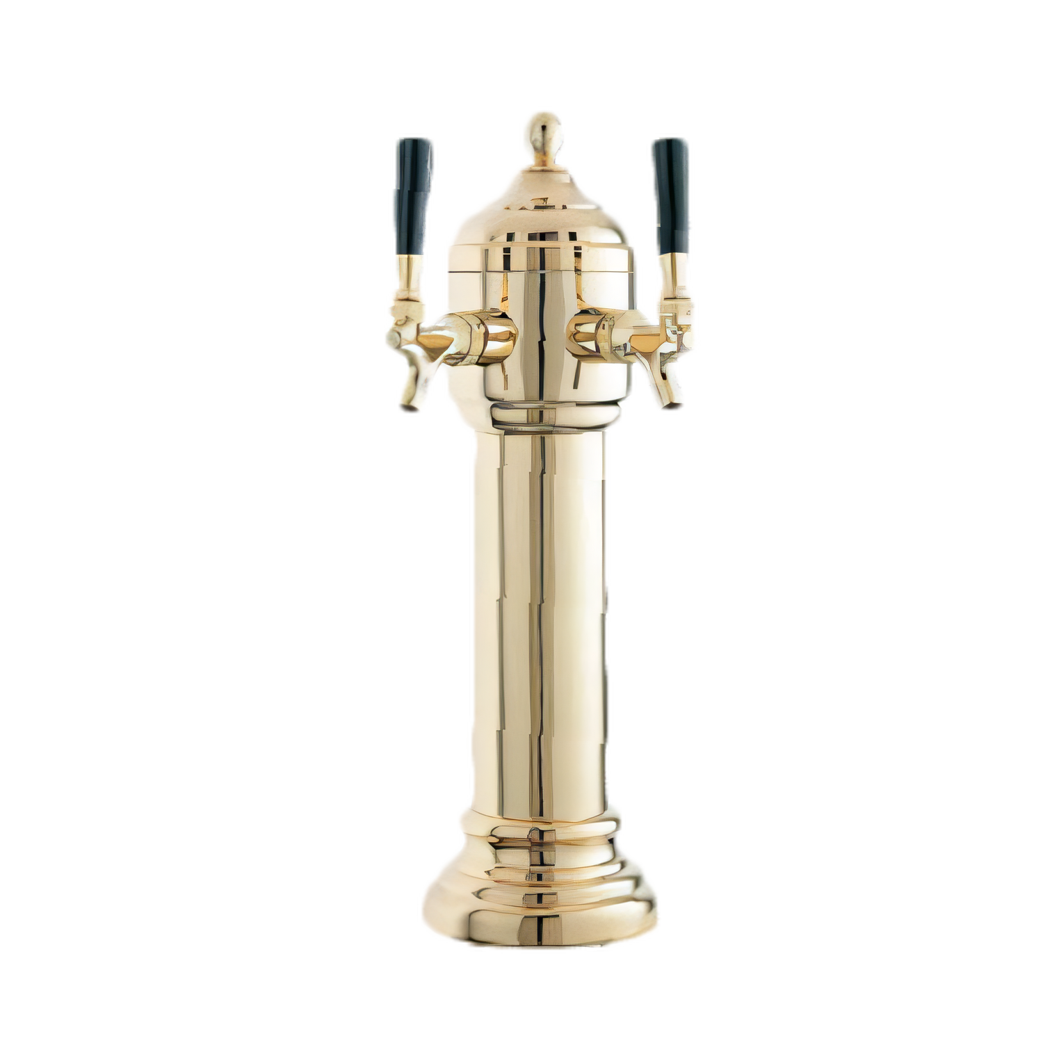 Napoli Draft Beer Tower, countertop, 5-1/2" diameter x 19-3/4"H, glycol-cooled, accommodates (2) faucets , all Perlick towers include 630SS faucets (630SSTF faucets where applicable on TF Brass and Gold Towers), 12-3/4" faucet clearance, gold-plated brass finish (Note: Must be combined with a full Century system quote, cannot be ordered standalone. )