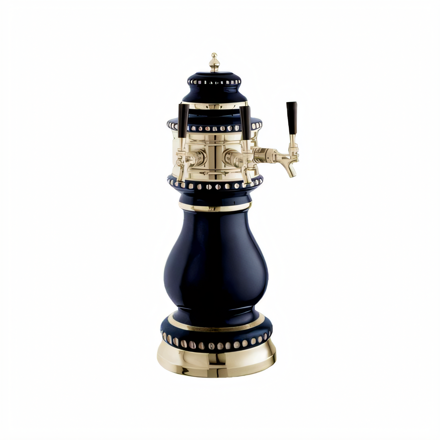 Torino Draft Beer Tower, countertop, 9-7/8" diameter x 26-7/8"H, glycol-cooled, accommodates (2) faucets , all Perlick towers include 630SS faucets (630SSTF faucets where applicable on TF Brass and Gold Towers), 16-5/8" faucet clearance, blue ceramic tower with tarnish-free polished brass faucet collar (Note: Must be combined with a full Century system quote, cannot be ordered standalone. )