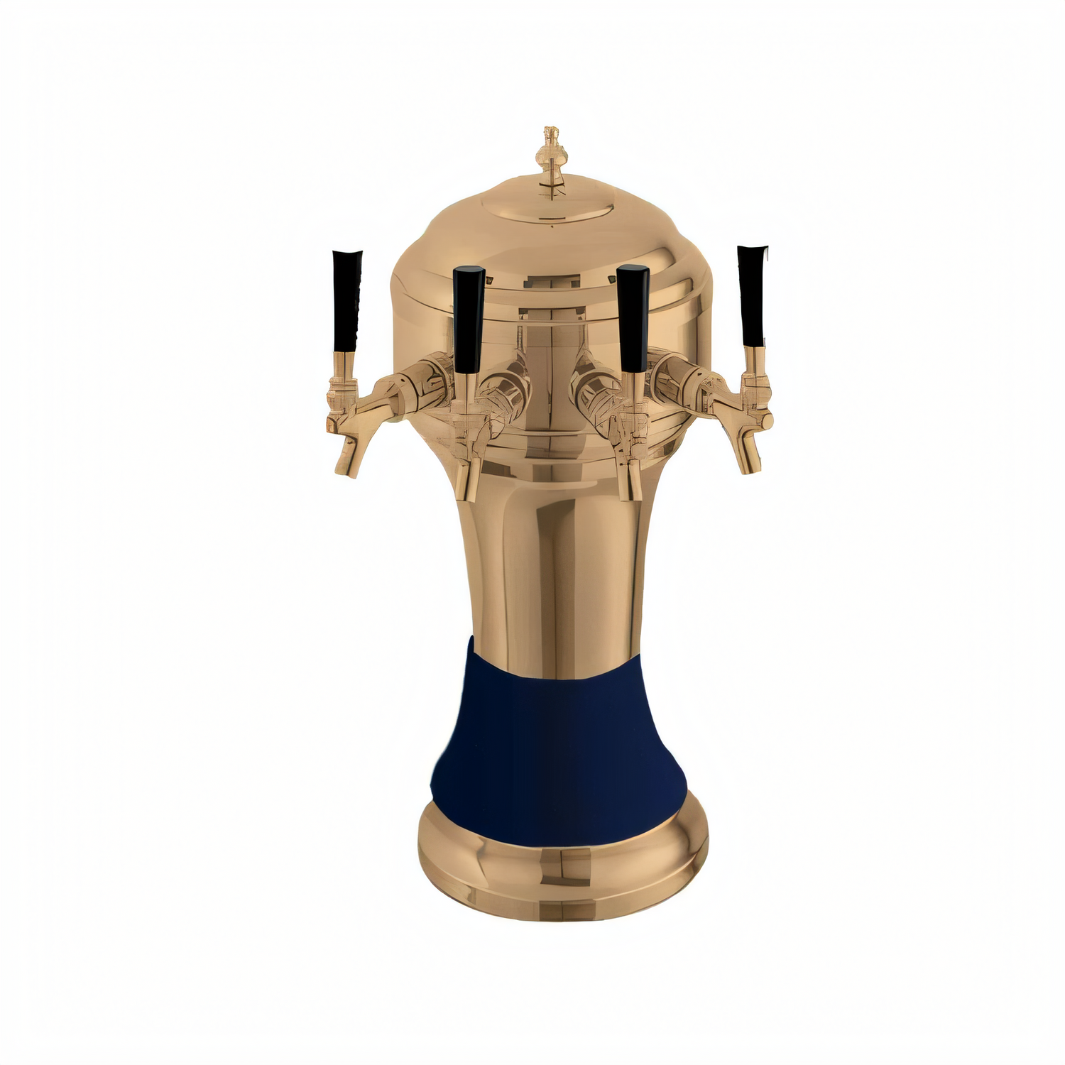 Roma Draft Beer Tower, countertop, 8-1/8" diameter x 20-1/2"H, glycol-cooled, accommodates (5) faucets , all Perlick towers include 630SS faucets (630SSTF faucets where applicable on TF Brass and Gold Towers), 3-1/2" OC, 13-1/8" faucet clearance, gold-tone brass body with blue ceramic skirt (Note: Must be combined with a full Century system quote, cannot be ordered standalone. )