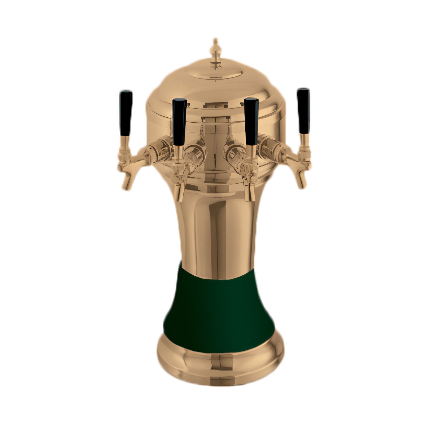 Roma Draft Beer Tower, countertop, 8-1/8" diameter x 20-1/2"H, glycol-cooled, accommodates (4) faucets , all Perlick towers include 630SS faucets (630SSTF faucets where applicable on TF Brass and Gold Towers), 3-1/2" OC, 13-1/8" faucet clearance, gold-tone brass body with green ceramic skirt (Note: Must be combined with a full Century system quote, cannot be ordered standalone. )
