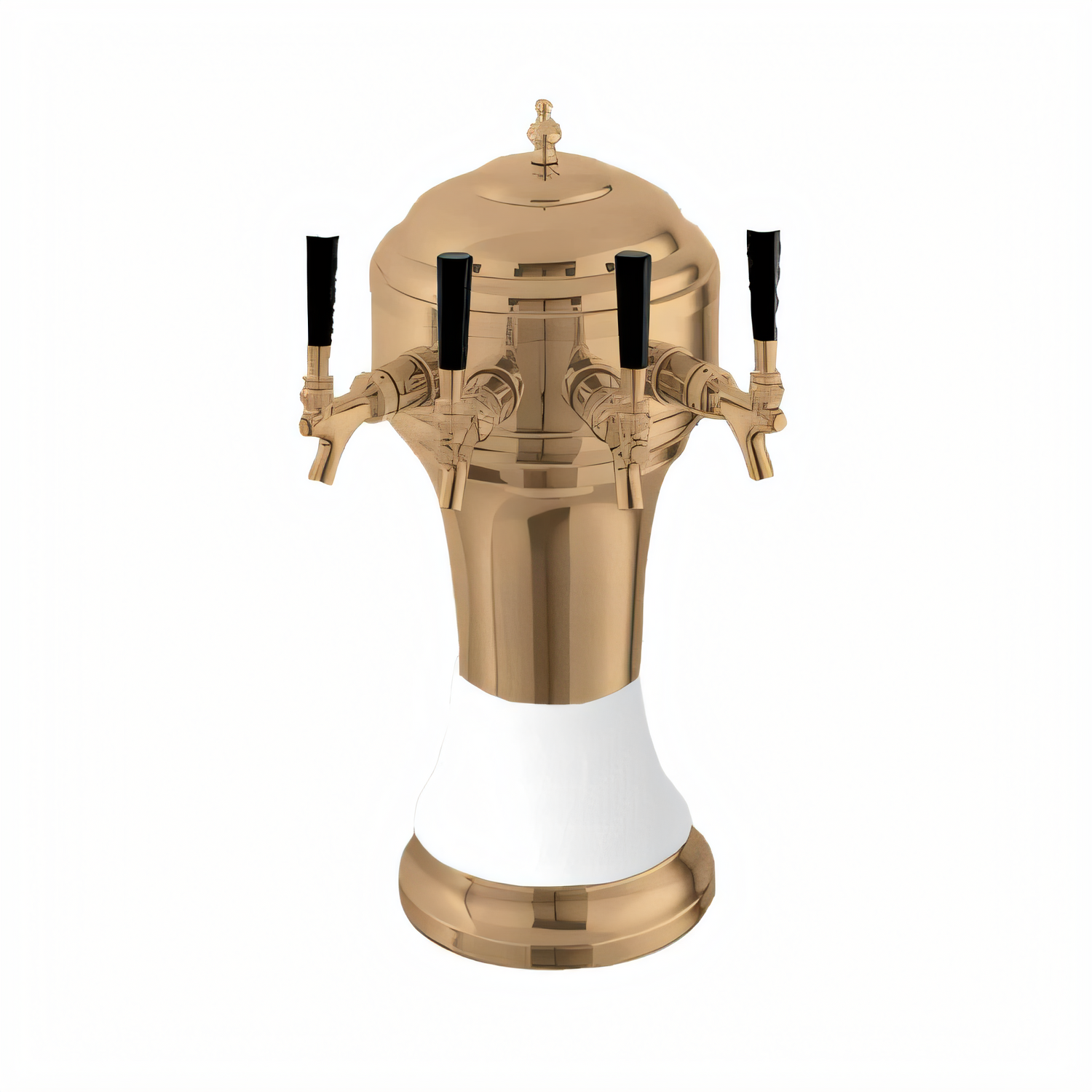 Roma Draft Beer Tower, countertop, 8-1/8" diameter x 20-1/2"H, glycol-cooled, accommodates (3) faucets , all Perlick towers include 630SS faucets (630SSTF faucets where applicable on TF Brass and Gold Towers), 3-1/2" OC, 13-1/8" faucet clearance, gold-tone brass body with white ceramic skirt (Note: Must be combined with a full Century system quote, cannot be ordered standalone. )