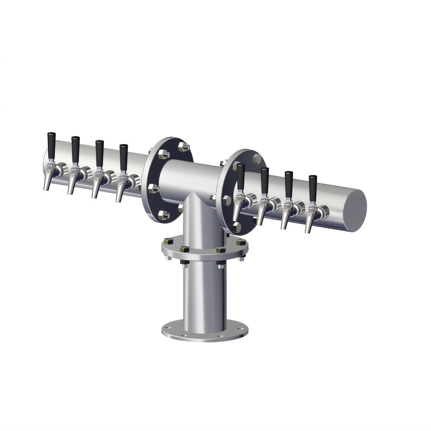 TEE Shaped Brew-Pipe Tower, countertop, 61-1/4" W x 17-3/4" H, glycol cooled, accommodates (16) faucets , all Perlick towers include 630SS faucets (630SSTF faucets where applicable on TF Brass and Gold Towers), 3" OC, 13-15/16" faucet clearance, insulated dispensing head, factory balanced restrictors, copper coolant lines & cold block included, stainless steel with matte finish (see spec sheet for detailed dimensions) (Note: Must be combined with a full Century system quote, cannot be ordered standalone. )