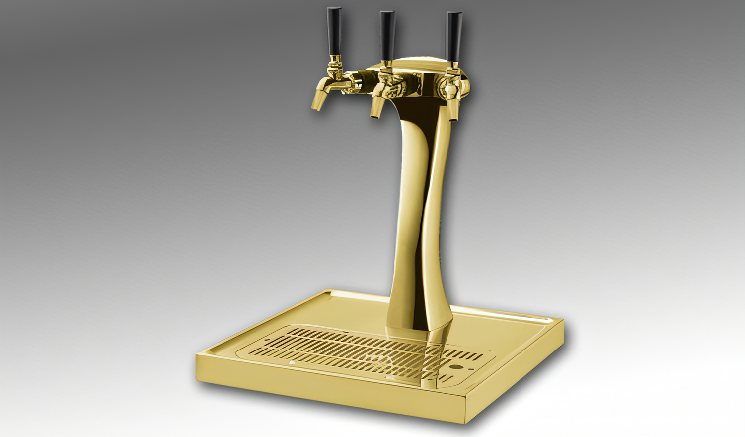 Panther Style Beer Dispensing Kit - (3) Faucets, Gold (dispensing head, drainer, faucet(s), air distributors, beer line connectors, air hose, air distributor cover, beer & drain line covers, air scoop & tubing, air sleeve, spanner wrench, drainer tubing - 8', silicone, hardware & fittings) (NOTE: keg couplers sold separately), field installation kit