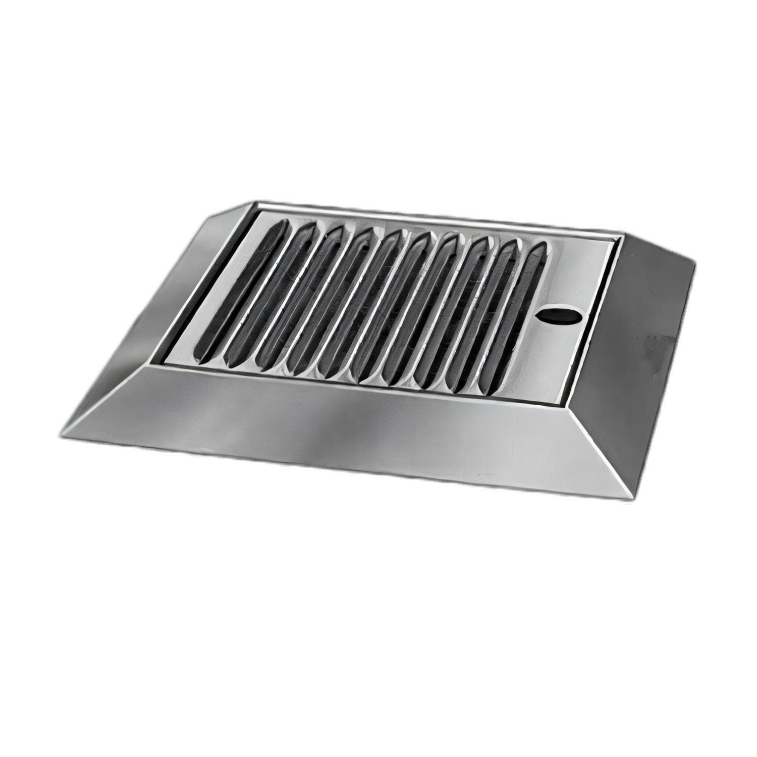 C18000 Series Drip Tray Trough, surface mount, 8-3/4"W x 7-3/4"D, bevel edge, removable louvered glass rack, 1/2" drain, stainless steel construction