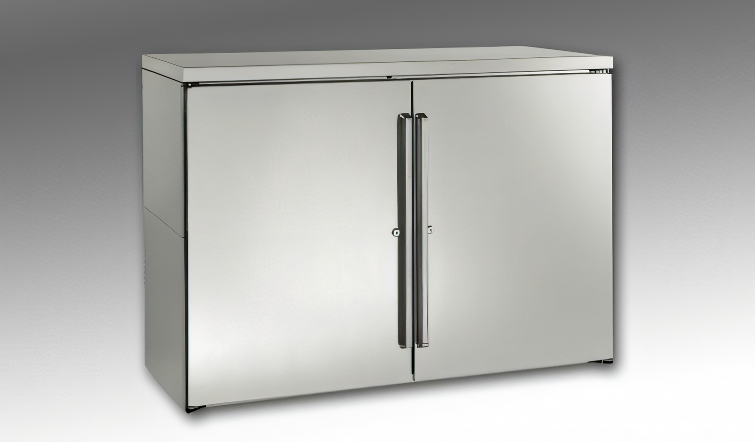 Back Bar Dry Storage Cabinet, two-section, 48"W, non-refrigerated, (15.3) cu.ft. internal volume, (2) hinged doors with locks, (3) vinyl-coated shelves per section, stainless steel interior, NSF