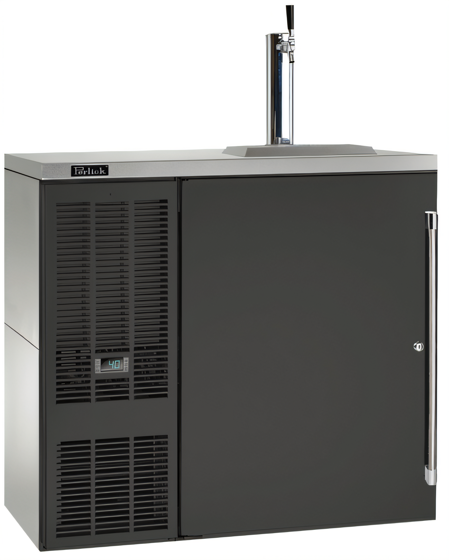 (QuickShip) Direct Draw Draft Beer Dispenser, one-section, 3" diameter dispensing hole centered over door (dispensing kits sold separately), 36"W, self-contained refrigeration front vented, holds (1) half barrel, 33-40F temp range, (1) solid door, black vinyl exterior, SS Top , 1/6 HP, R290 Hydrocarbon refrigerant, NSF, cULus