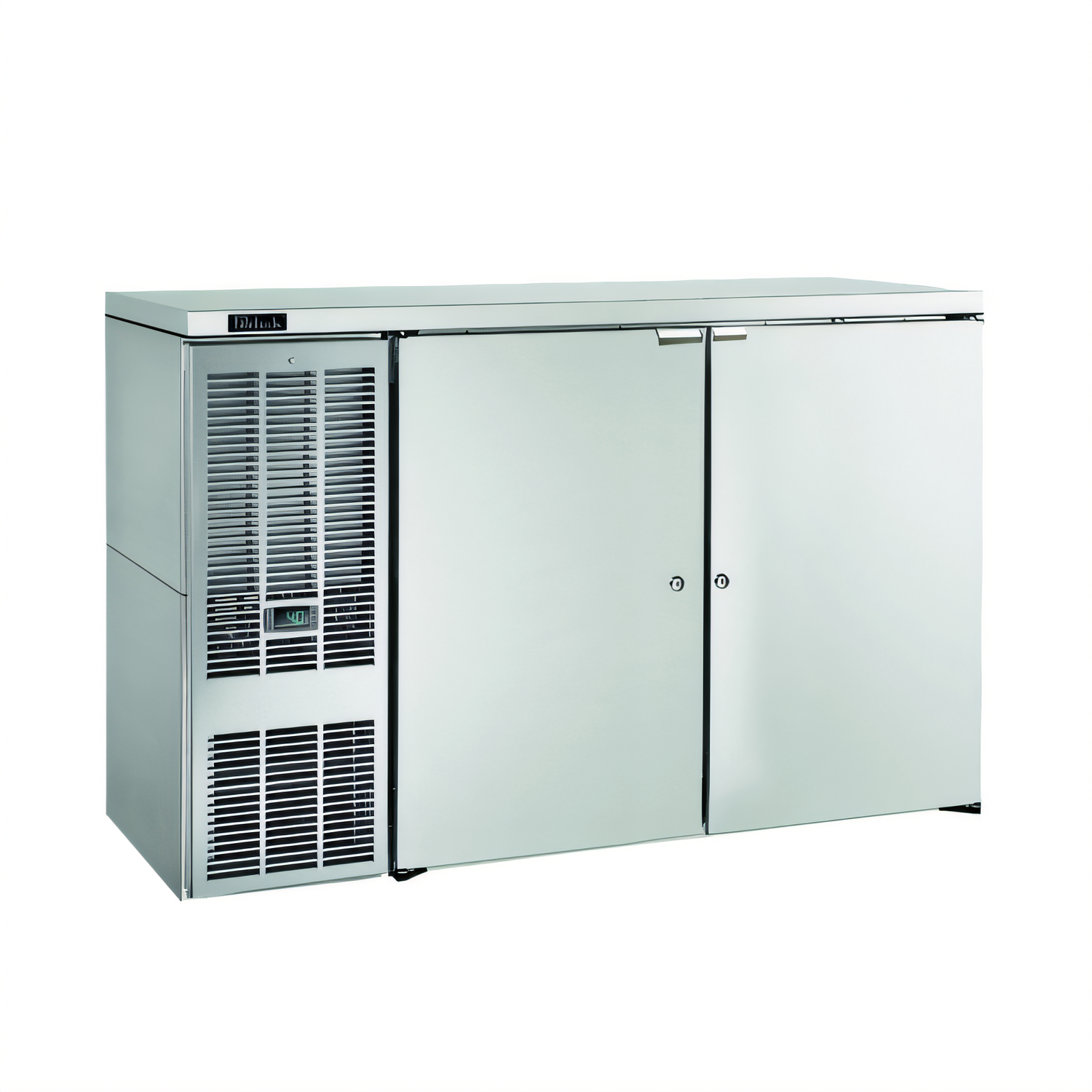 Direct Draw Draft Beer Dispenser, two-section, 60"W, self-contained refrigeration, holds (2) half barrels & (1) quarter barrel (LESS TAPPING), 33-40°F temperature range, (2) solid doors, digital thermostat, front vented, automatic defrost & evaporator condensate, automatic defrost & condensate evaporator, includes floor drain, stainless steel top, ends & back exterior, 1/5 HP, R290 Hydrocarbon refrigerant, NSF, cULus