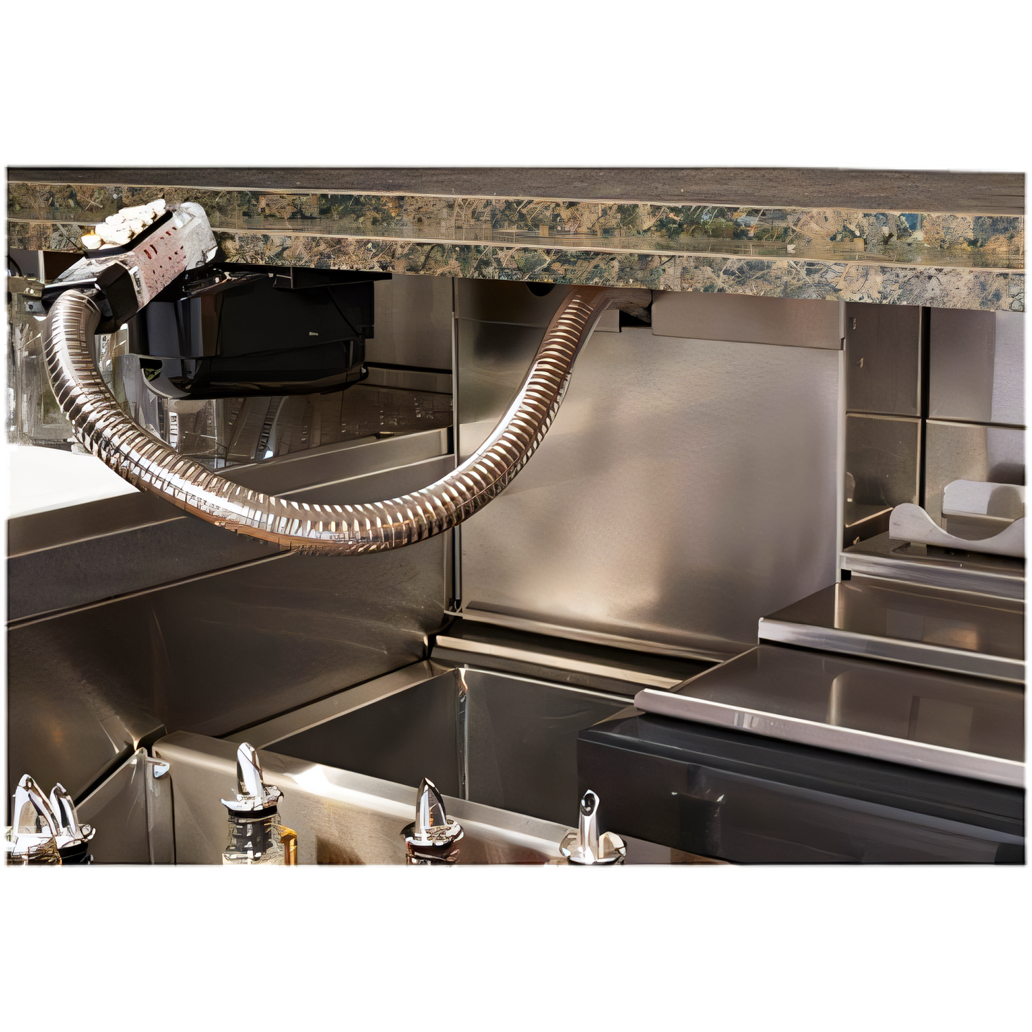 Tobin Ellis Signature Cocktail Station, pre-configured, 68"W O.A., includes: 12"W insulated bottle well with soda manifold housing (TSC12IBW-MH), 30"W ice chest with 10-circuit cold plate (TSC30IC10), 30"W 3-piece sliding ice chest cover (ICC-C30), (2) ice chest dividers (ICC-TSC), 30"W bottle tray for (9) bottles (ICBT-9), curved speed rail on left end (SRC-CL), 18"W single speed rail (SRC-S18), curved speed rail on right (SRC-CR), 8"W slanted speed rack (TSCE8SSR), 18"W x 27-1/2"D utility sink with glass rinser & recessed cubby on front (TSCE18PSTC-RC), splash mount gooseneck faucet with swing spout (67419-GN-LF), dual foot operated water valves (67420-2-LF), stainless steel wet waste basket (7055-47)