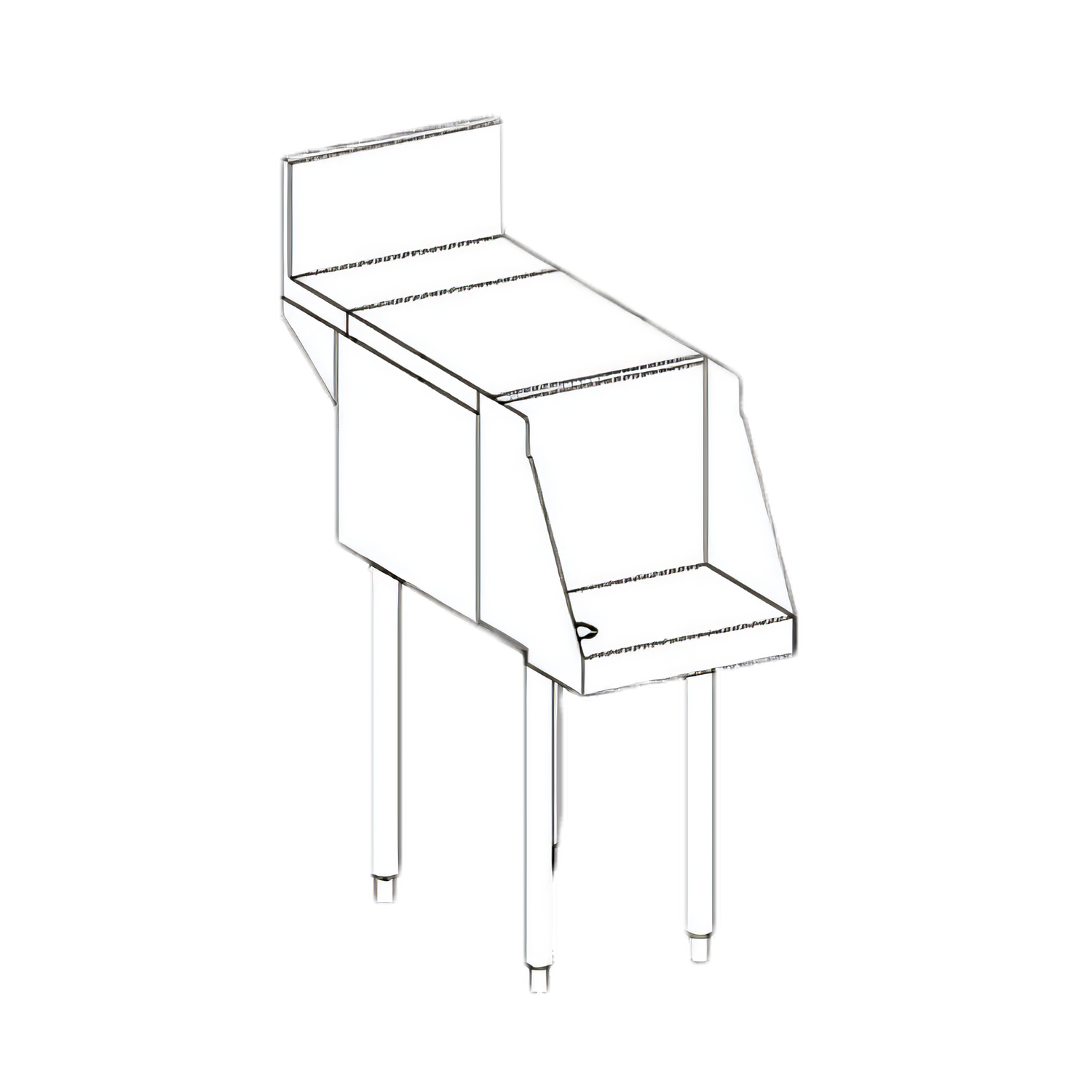 TS Series Blender Station, 18", flat worktop, recessed blender shelf with duplex outlet, 23-15/16" front to back with 6" splash, stainless steel construction
