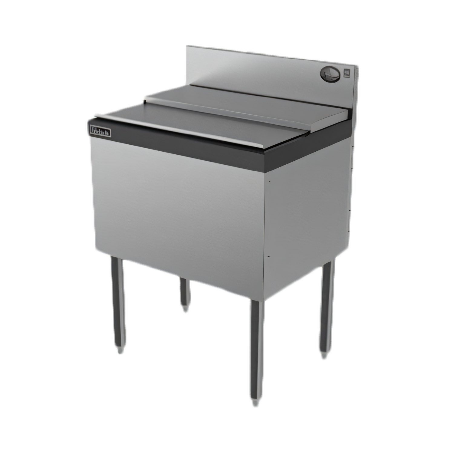 TS Series Underbar Ice Bin/Cocktail Unit, modular, 48"W x 18-9/16"D, approximately 115-lb. ice capacity, 6"H backsplash with 1" return at top, ABS plastic top ledge, 10-3/4" deep stainless steel ice bin, stainless steel front & sides, galvanized steel back & bottom, 1/2" NPS male drain, 1-5/8" tubular stainless steel legs with 1" adjustable thermoplastic feet, NSF