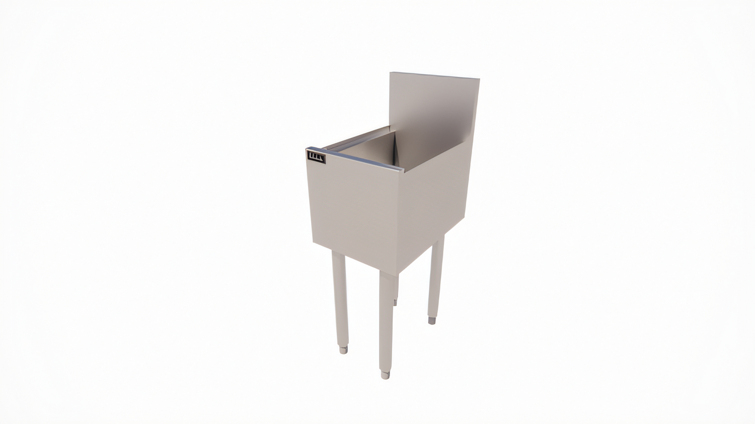 Tobin Ellis Signature Bottle Storage Bin, insulated, 12"W, holds (8) 3-3/4" dia. bottles, 6"H backsplash with 1" return, 1/2" NPS drain, stainless steel construction, stainless steel legs with adjustable thermoplastic feet, NSF