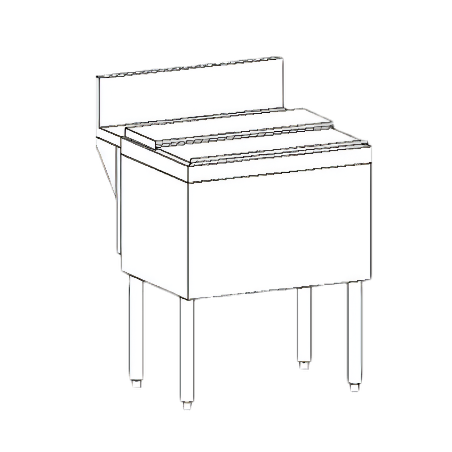 TSD Series Underbar Ice Bin/Cocktail Unit, modular, 18"W x 24"D, approximately 35-lb. ice capacity, 6"H backsplash with 1" return at top & rear deck, ABS plastic top ledge, 10-3/4" deep stainless steel ice bin, stainless steel front & sides, galvanized steel back & bottom, 1/2" NPS male drain, 1-5/8" tubular stainless steel legs with 1" adjustable thermoplastic feet, NSF