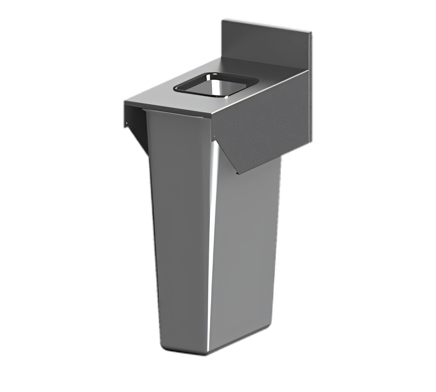 TSF Series Trash Receptacle Top Cover, 12"W x 24"D x 13-9/16"H, stainless steel construction (wastebasket is not included), 6"H backsplash, 8-3/8" x 6-3/8" opening for trash (requires support by adjacent underbar equipment or accessory end panel & leg kit)