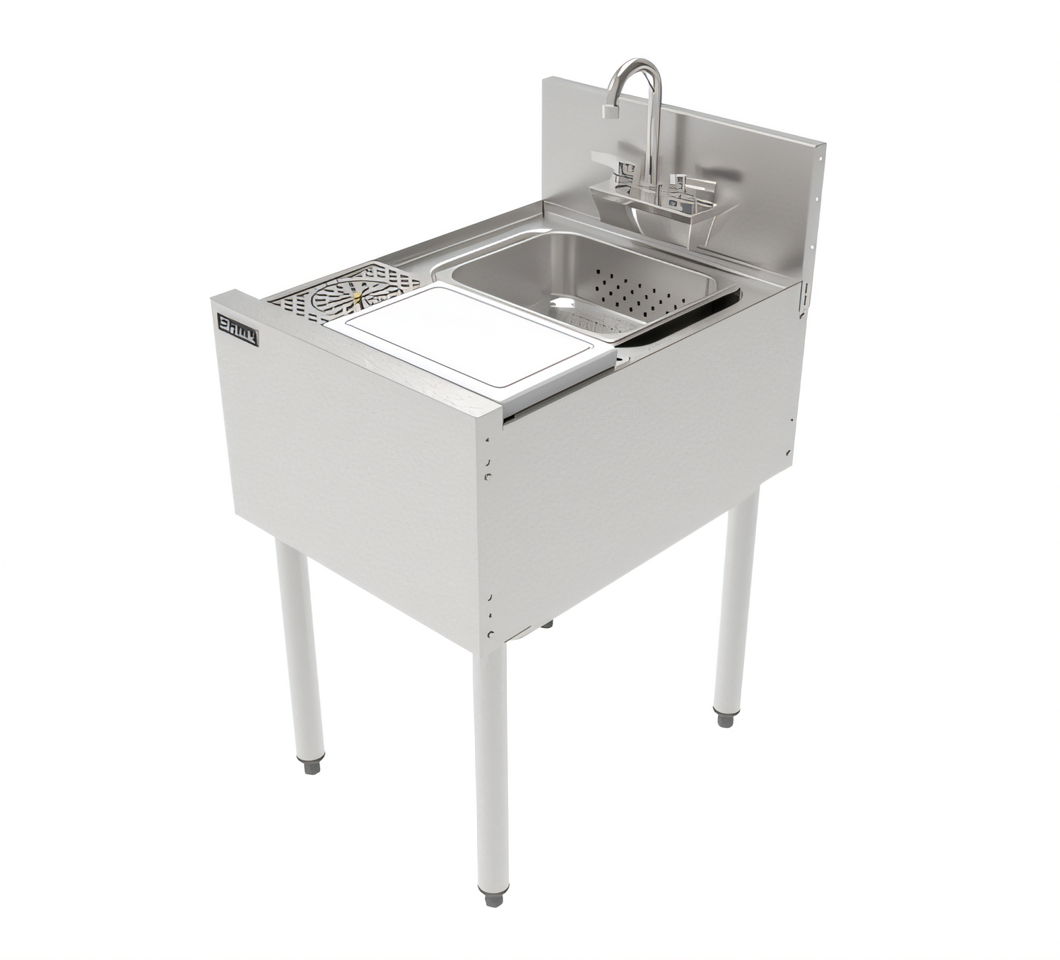 TSF Series Underbar Prep Sink, 18" W x 24" D x 36" H, with Sink bowl (13.75"W x 10" FTB x 9.5" D), Cutting board (11.5"W x 7.5"D), Glass Rinser (5" Diameter)