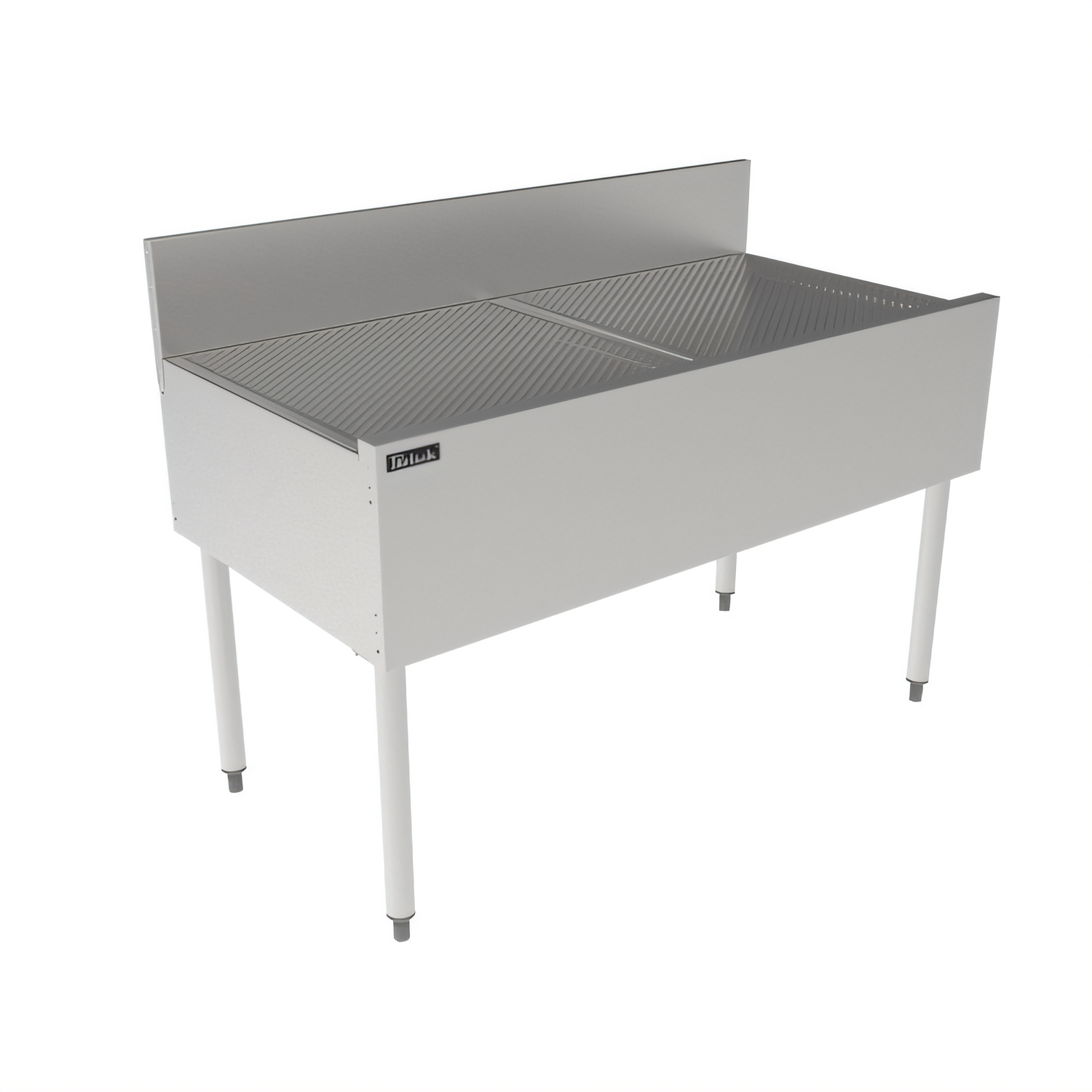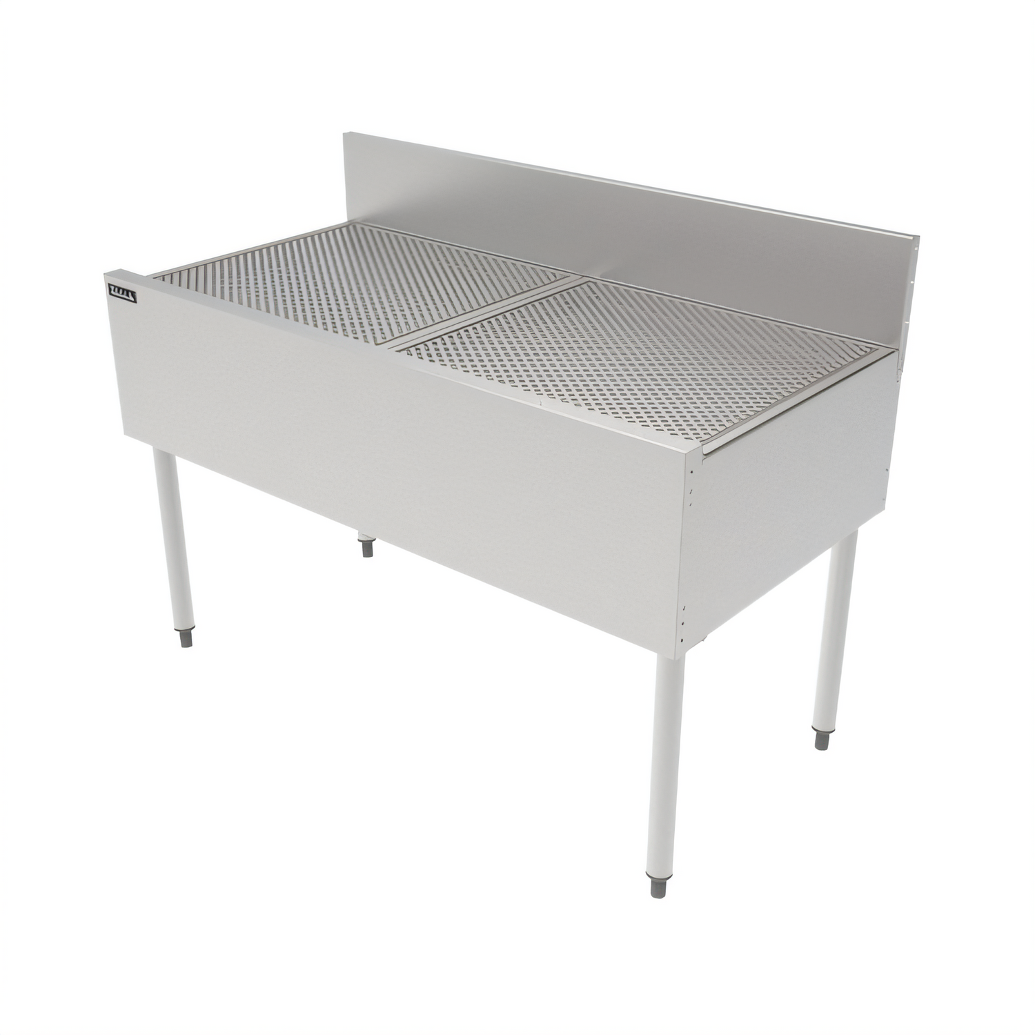 TSF Series Underbar Drainboard, 48"W x 24"D, pitched drainboard top, all stainless steel construction, backsplash, Perlick Quick Clamp tool less leg attachment, stainless steel legs with adjustable thermoplastic feet (replaces TSF48 TSD48)