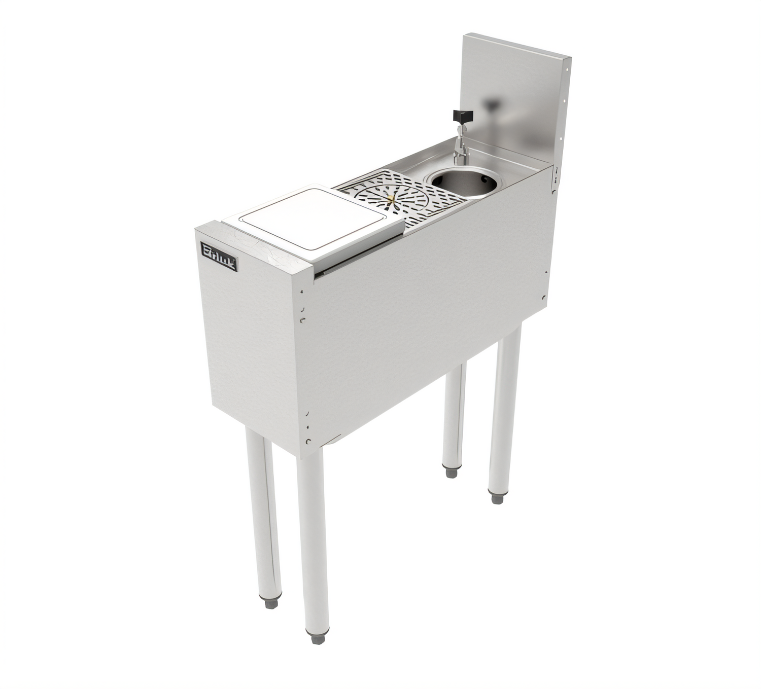 TSF Series Underbar Prep Sink, 8" W x 24" D x 36" H, with Cutting board (8"W x 7.5"D), Glass Rinser (5" Diameter), & Tool well with faucet (5.5" Diameter)