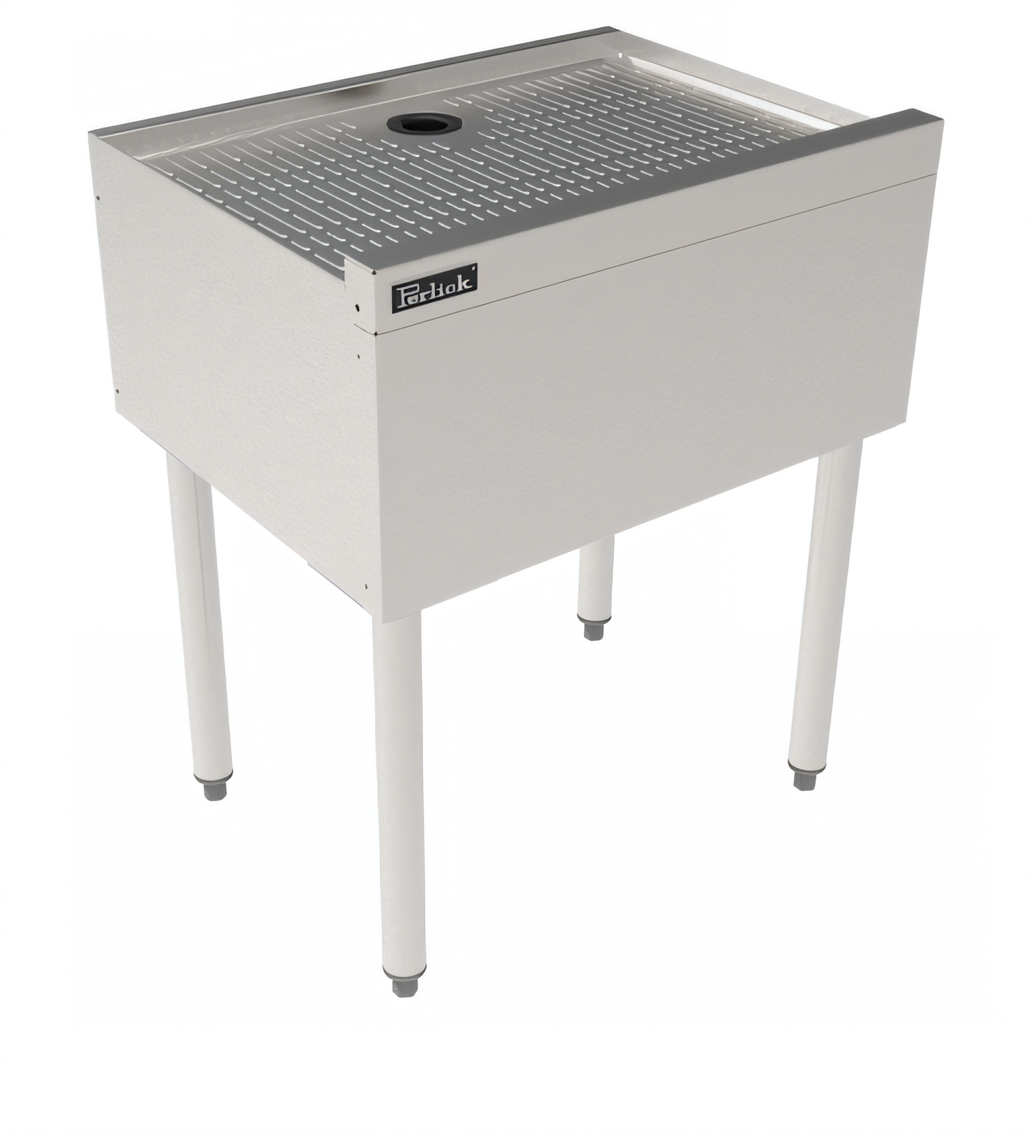 TSS Series Underbar Drainboard, 18"W x 17-9/16"D, embossed top, stainless steel legs with adjustable thermoplastic feet, Perlick Quick Clamp tool less leg attachment, stainless steel legs with adjustable thermoplastic feet (replaces TSS18)