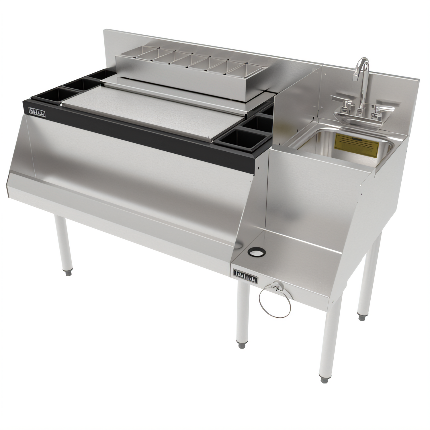 Underbar Ice Bin/Cocktail Station, blender station, 48"W x 24"D, includes: 36" ice chest with 10-circuit cold plate, 6-bottle wells, cover & end splash; 12" blender station with sink, low-lead faucet, & towel ring; bottle rail, condiment cup rack, backsplash cutout for soda lines, stainless steel construction
