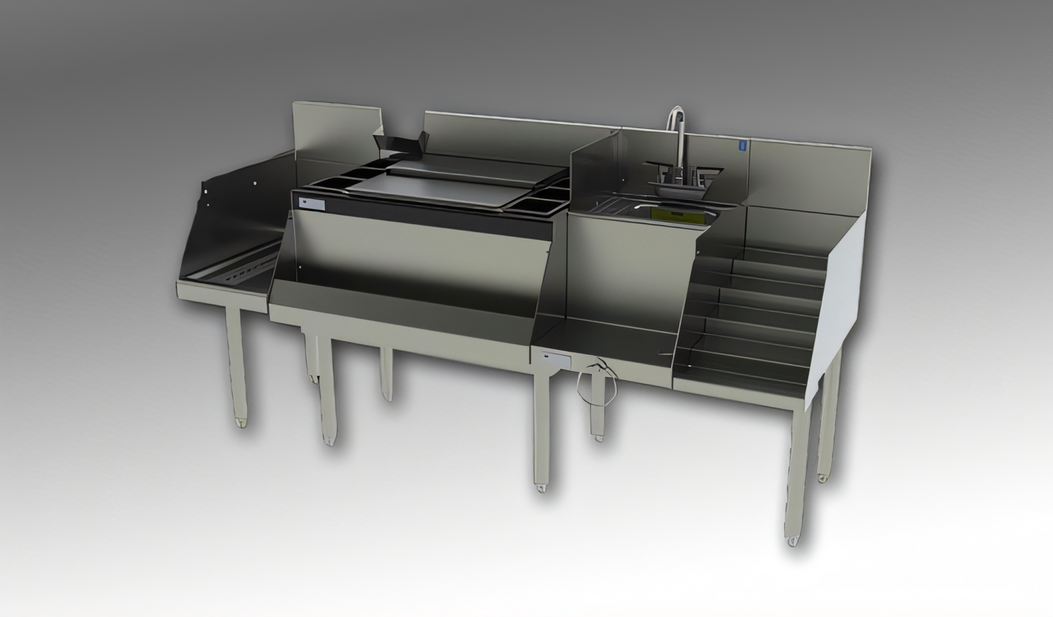 Underbar Ice Bin/Cocktail Station, blender station, 48"W x 24"D, includes: 30" ice chest with 10-circuit cold plate, 6-bottle wells, cover & end splash; 18" blender station with sink, low-lead faucet, & towel ring; bottle rail, condiment cup rack, backsplash cutout for soda lines, stainless steel construction