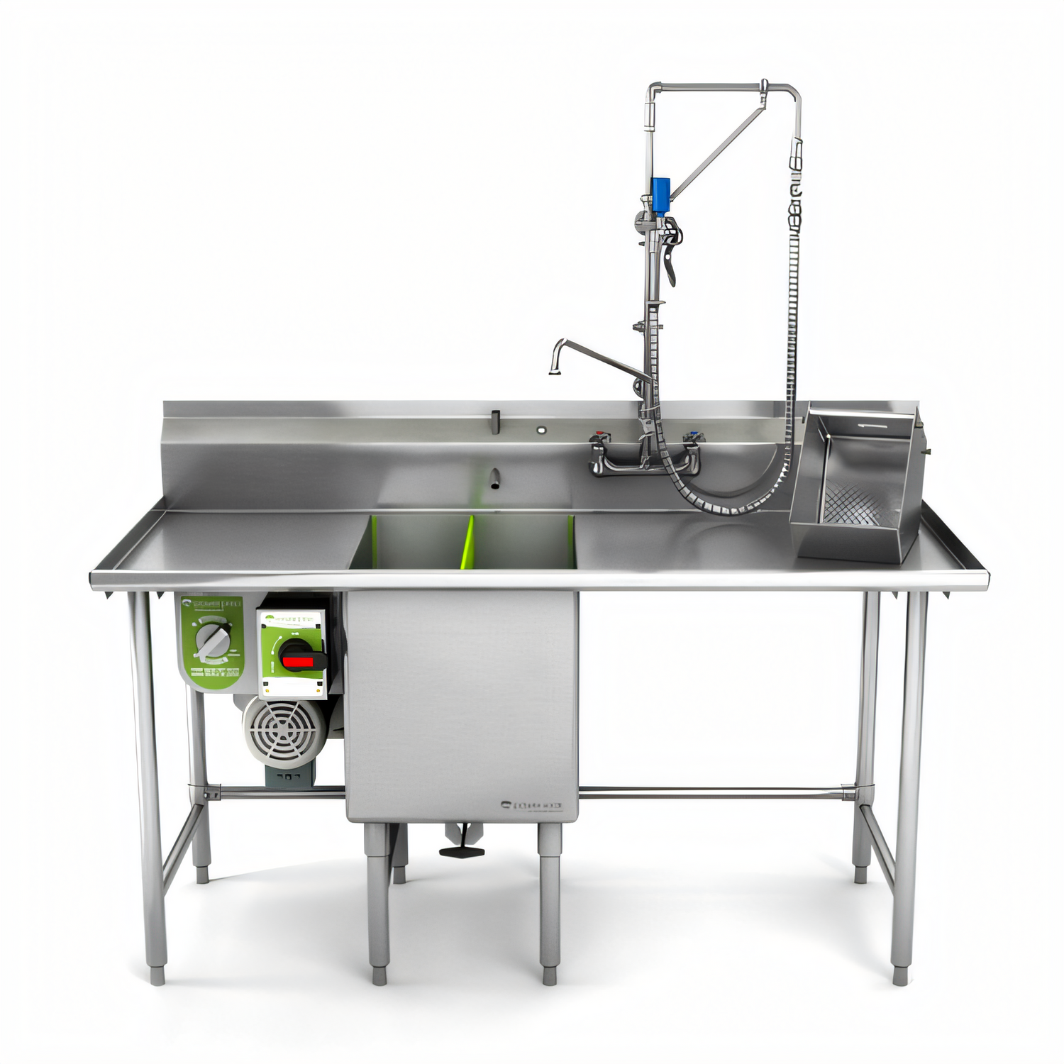 - Integrated ½" faucet with pre-rinse spray for spot-cleaning & final rinse.