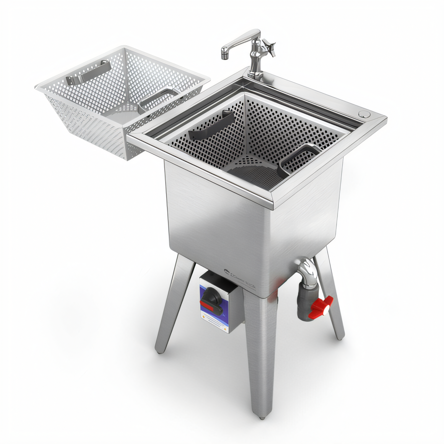 - Tool-free SST drain screen, 1½" ball-valve drain, and hot-only faucet simplify clean-out.