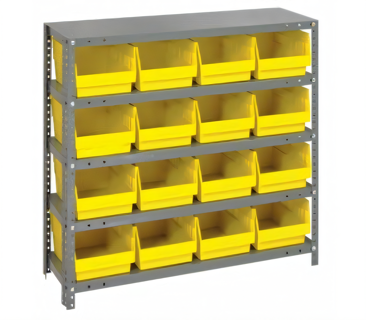 Shelving Unit, 12"D x 36"L x 39"H, heavy duty, 400 lb. load capacity per shelf, includes: (5) shelves, (16) 11-5/8"L x 8-3/8"W x 6"H (QSB202) bins available in multiple colors, uprights and cross bars, smooth powder-coat finish