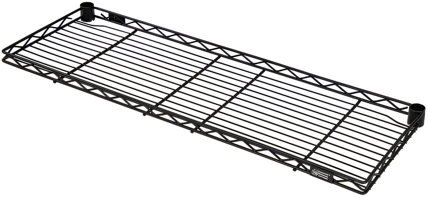 Wire Shelf, cantilevered, 42"W x 12"D, 1" retaining ledge around shelf, black epoxy antimicrobial finish, NSF