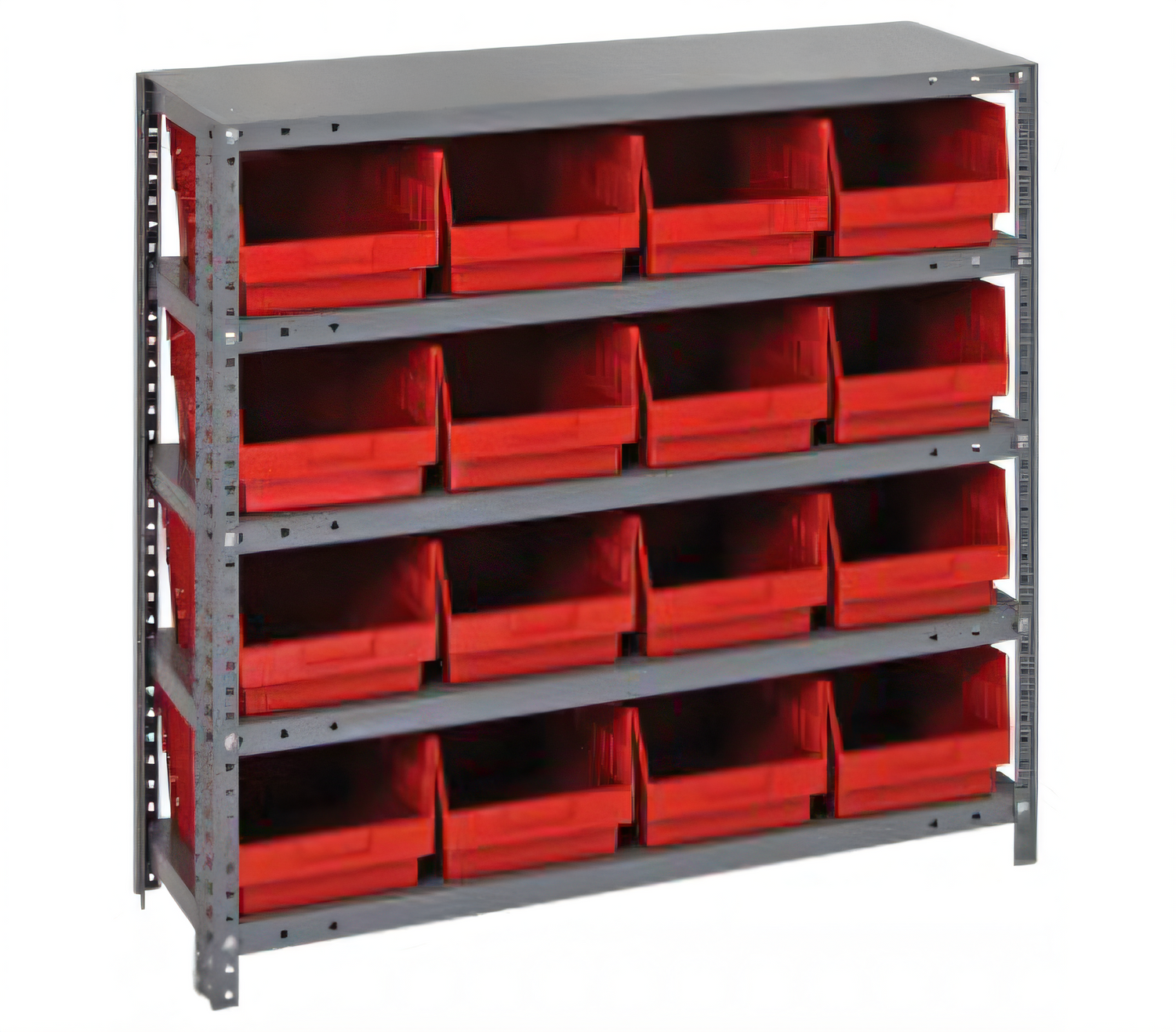 Shelving Unit, 18"D x 36"L x 39"H, heavy duty, 400 lb. load capacity per shelf, includes: (5) shelves, (16) 17-7/8"L x 8-3/8"W x 6"H (QSB208) bins available in multiple colors, uprights and cross bars, smooth powder-coat finish