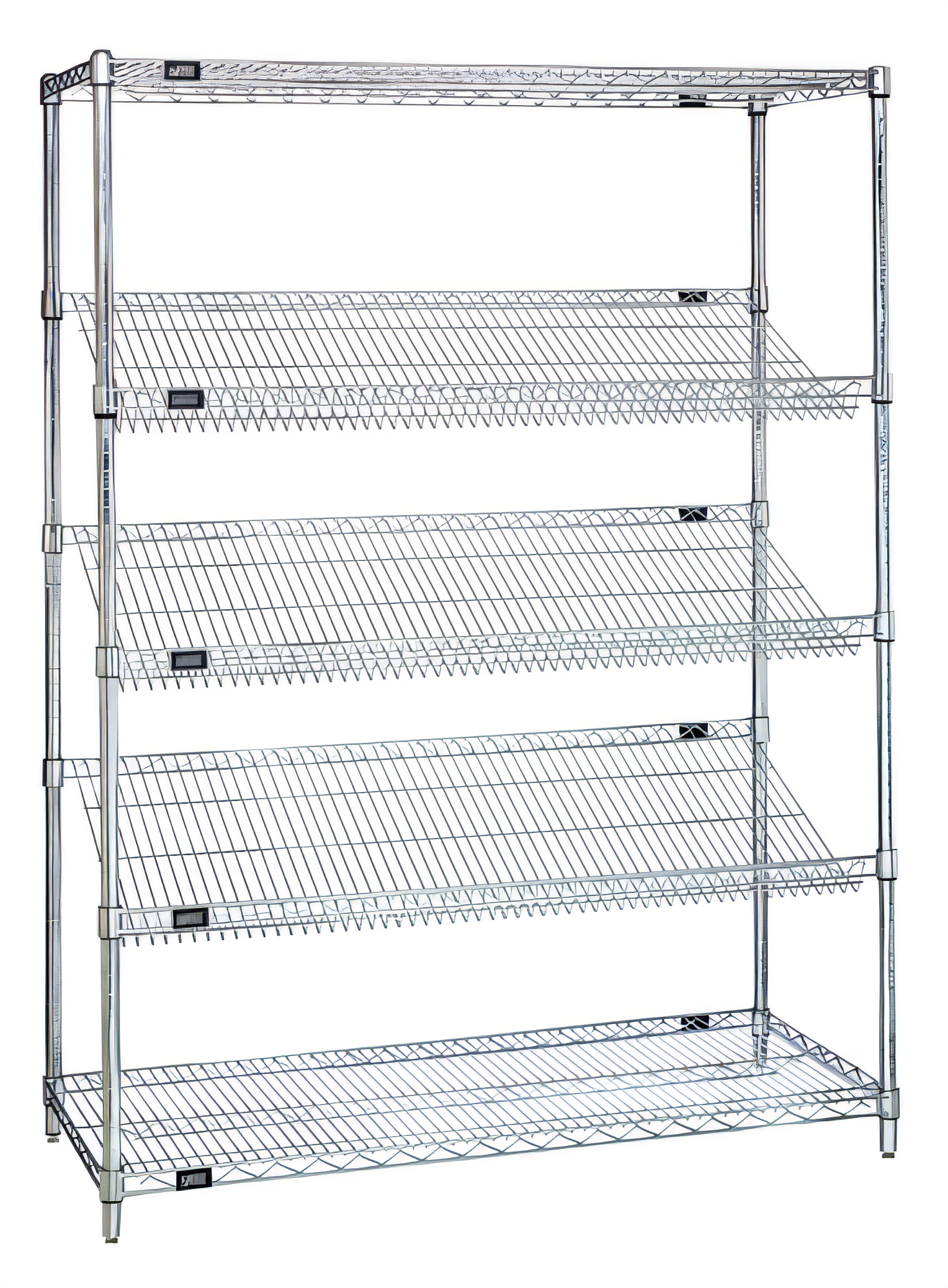 Slanted Shelving Unit, stationary, 48"W x 18"D x 63"H, includes: (2) flat wire shelves, (3) slanted wire shelves, (4) 63" posts, chrome plated finish, NSF