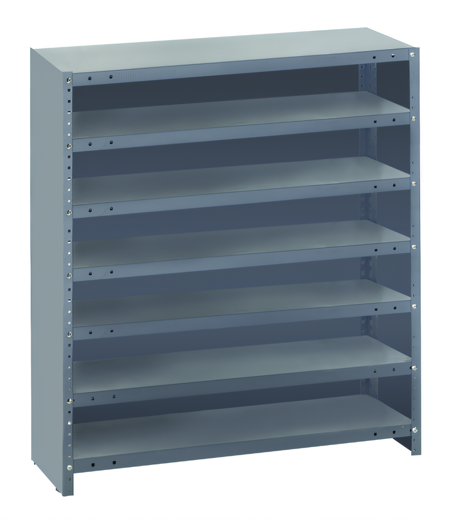 Shelving Unit, closed, 18"D x 36"L x 39"H, heavy duty, 400 lb. load capacity per shelf, includes: (7) shelves, uprights and cross bars, smooth powder coat finish