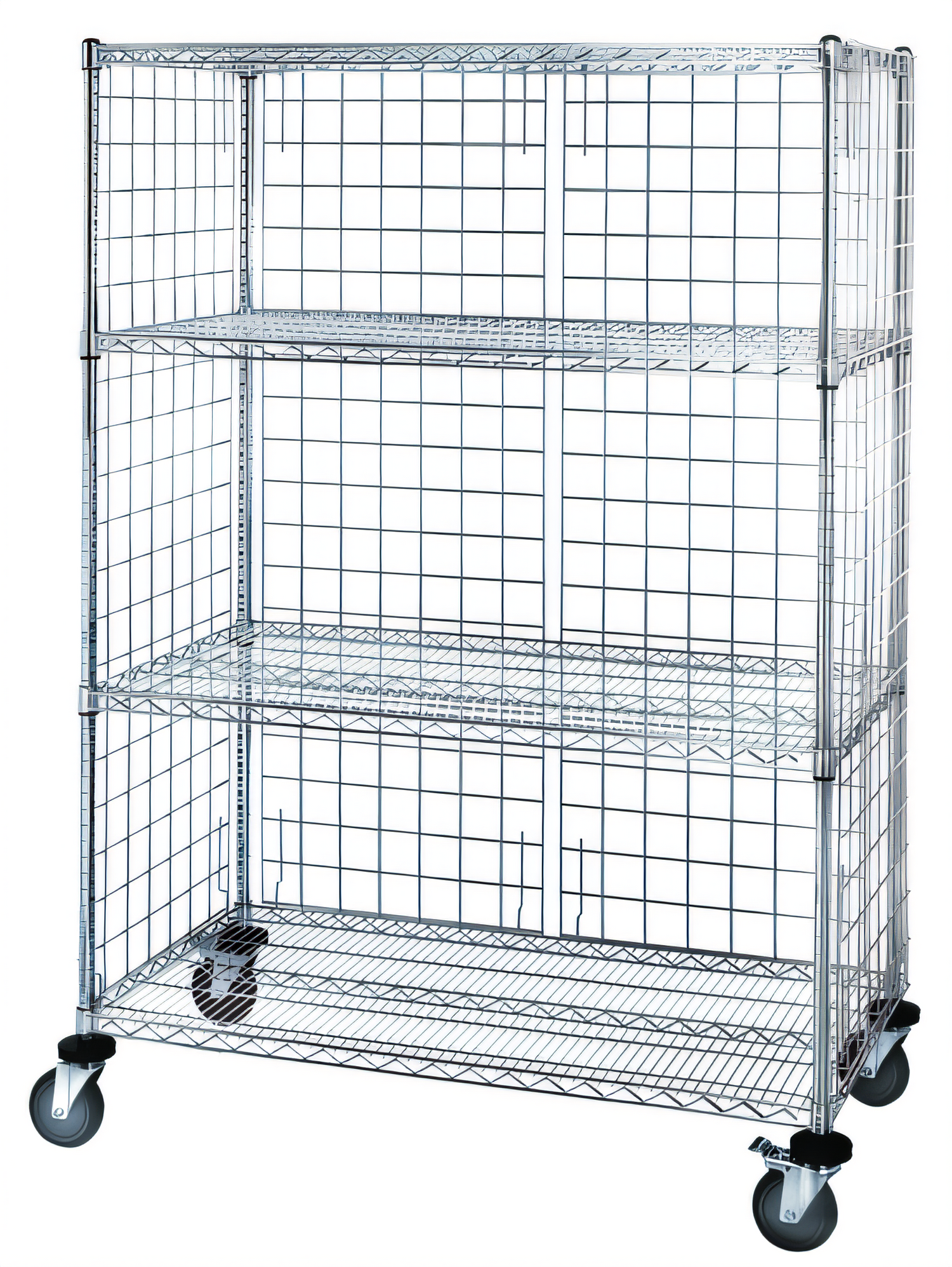 Mobile Enclosure Cart, 36"W x 24"D x 69"H, includes: (4) wire shelves, (4) enclosure panels, (4) 63" posts, (4) donut bumpers, (4) 5" thermoplastic resin casters, chrome plated finish