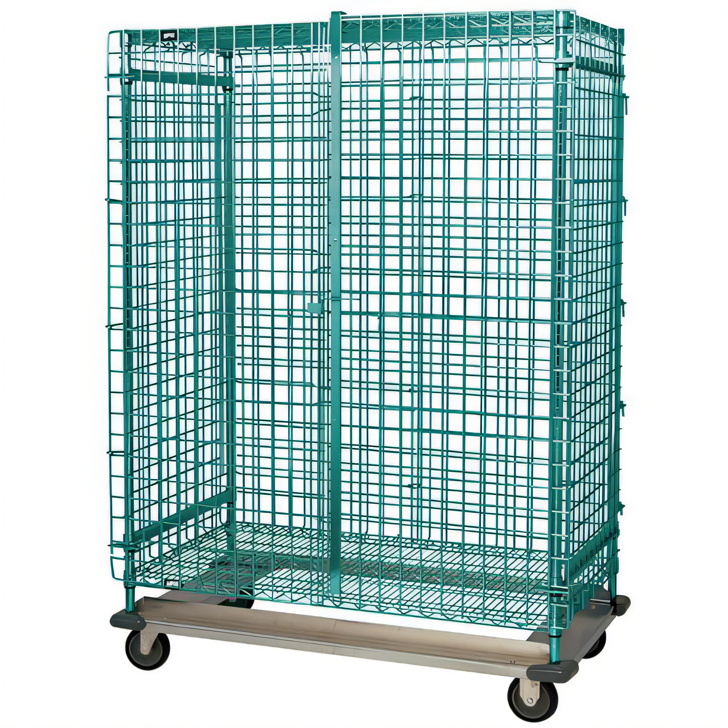 Quantum Model MD2448-70SECP • Green Epoxy Antimicrobial FinishKeep high-value inventory visible, secure, and on the move. Quantum’s dolly-base security unit combines heavy-duty welded wire construction with a smooth-rolling plate-caster base, giving you 800 lb shelf capacity and full 270° door access in an NSF-approved, antimicrobial package built to thrive in wet, humid, or walk-in cooler environments.